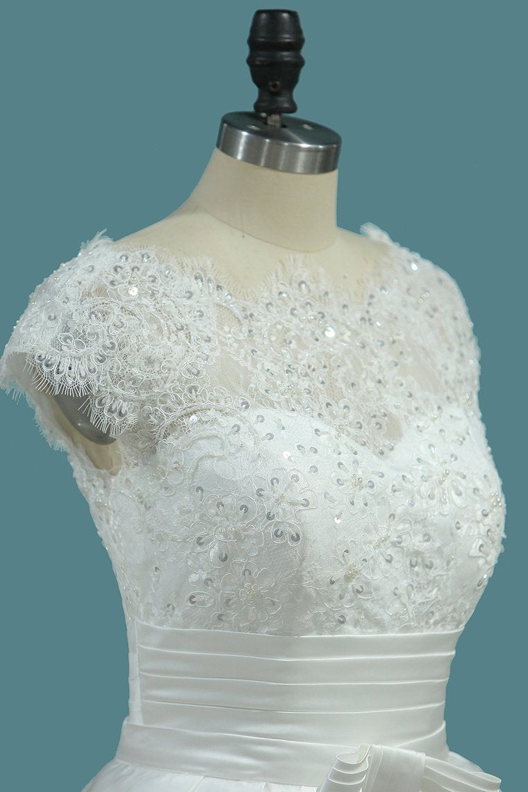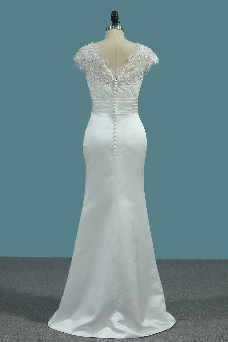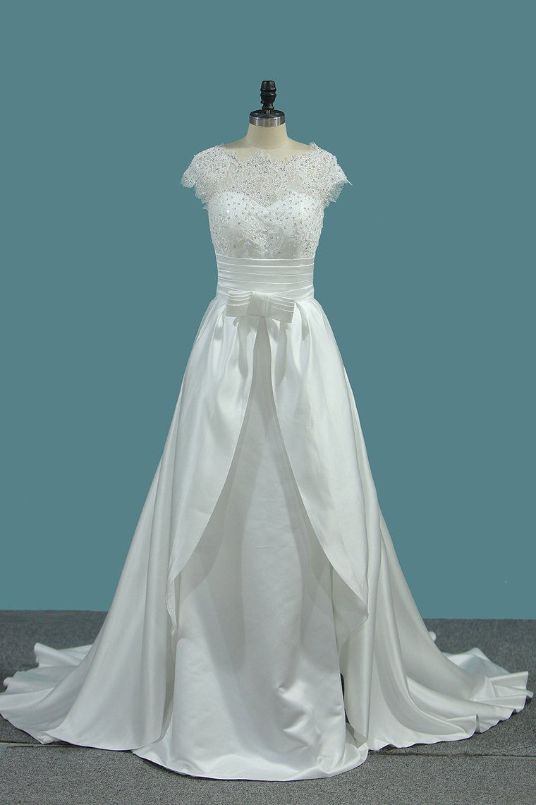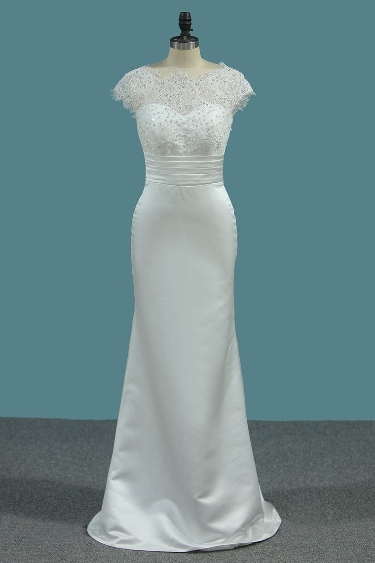 2024 Satin Mermaid Scoop Wedding Dresses With Ruffles Court Train Detachable