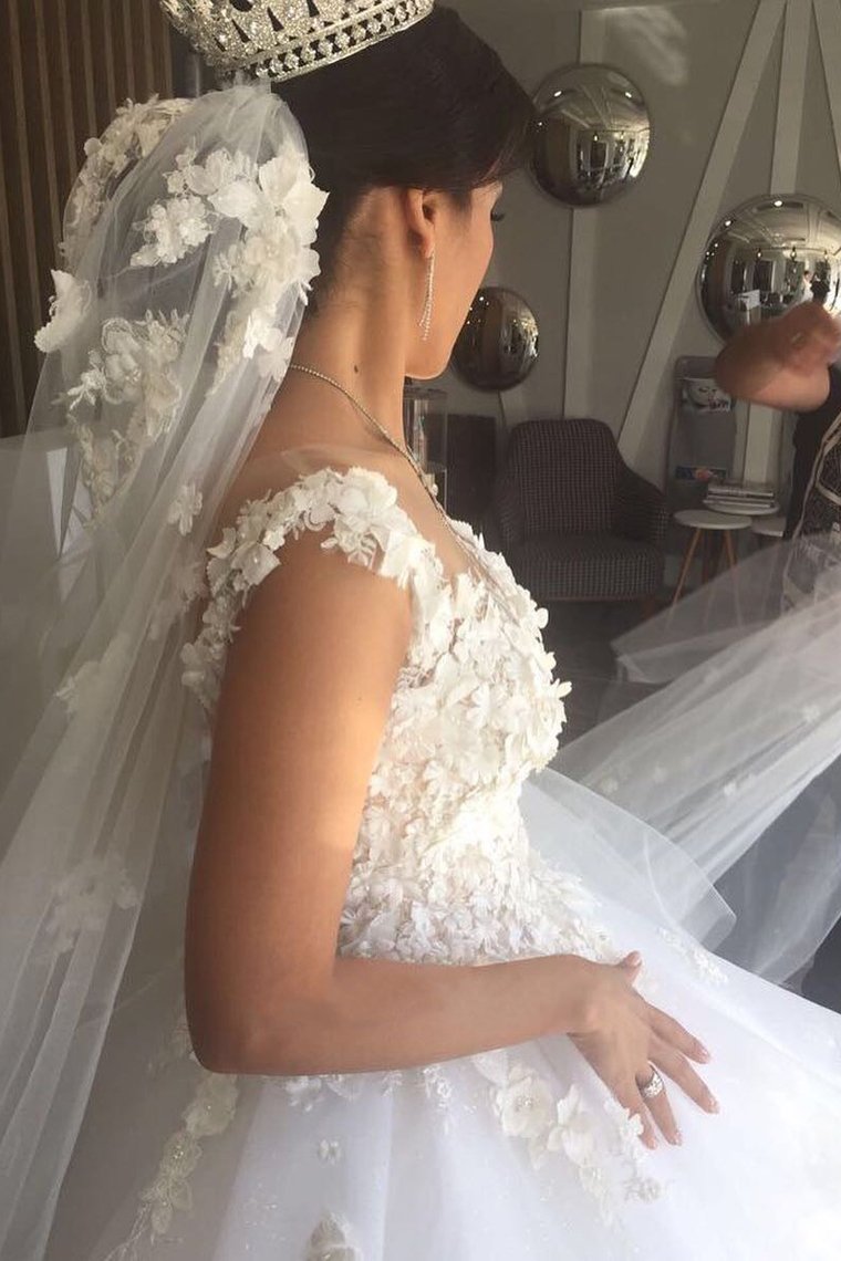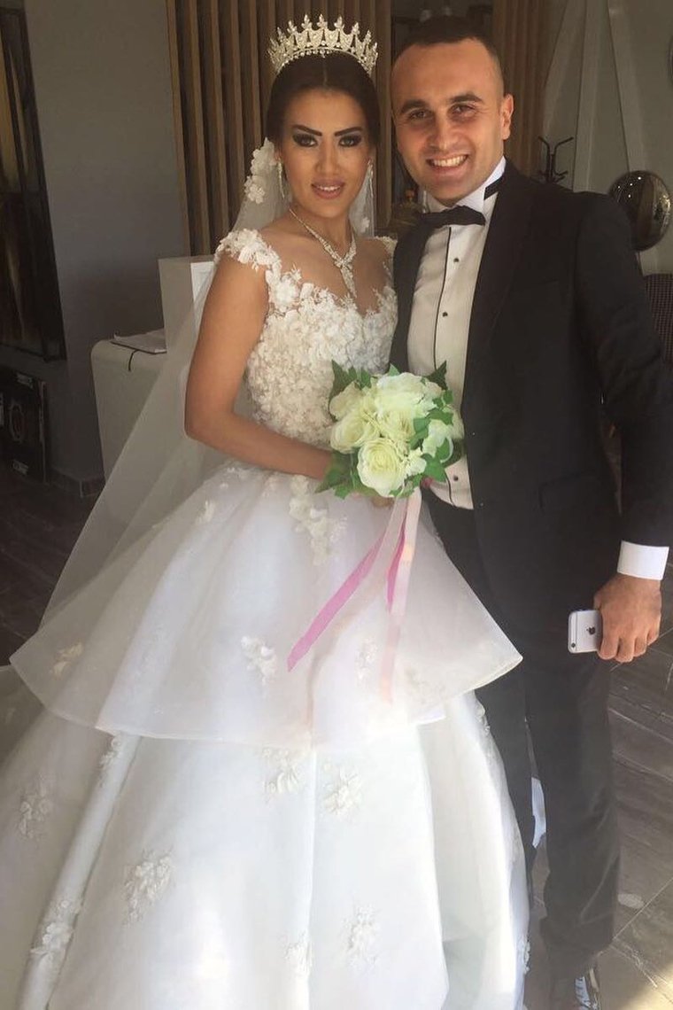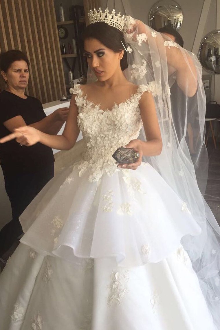 2024 Scoop A Line Organza Wedding Dresses With Applique And Handmade Flower