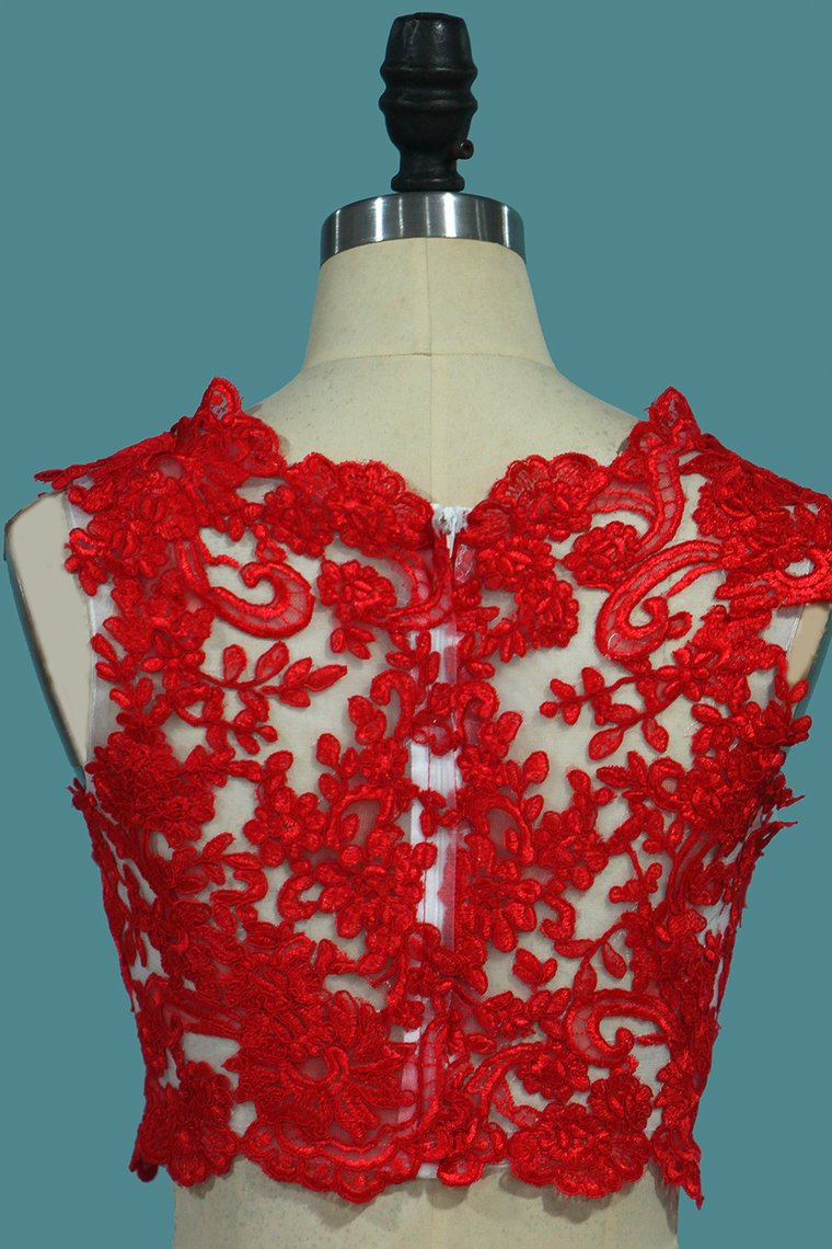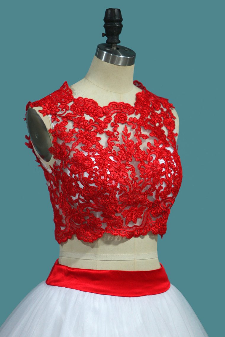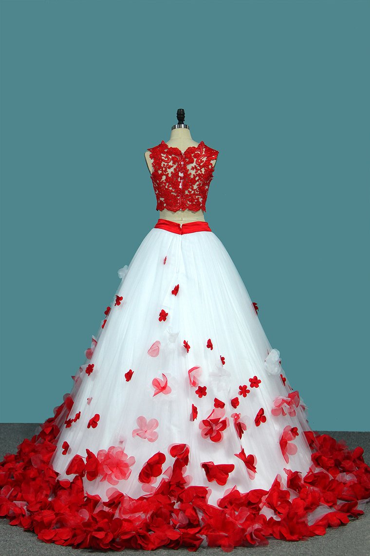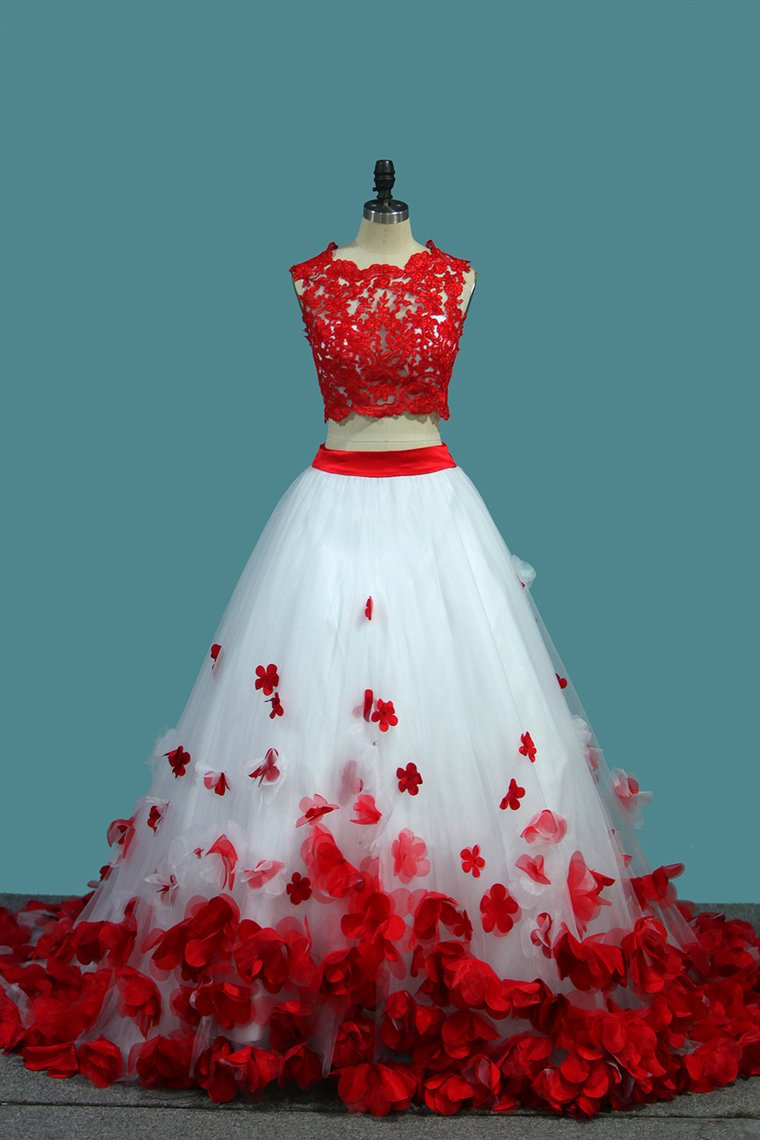 2024 Scoop A Line Tulle Two-Piece Wedding Dresses With Applique And Handmade Flower