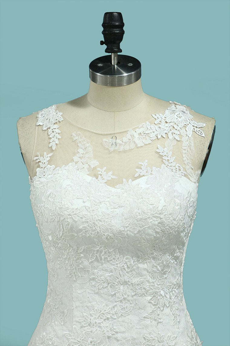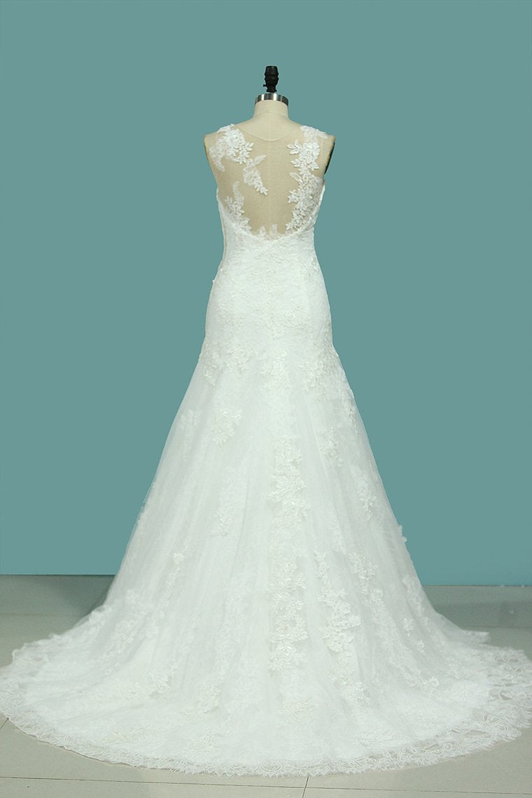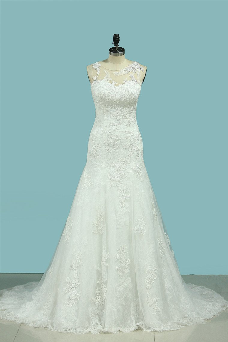 2024 Scoop Lace With Applique Wedding Dresses Mermaid Court Train