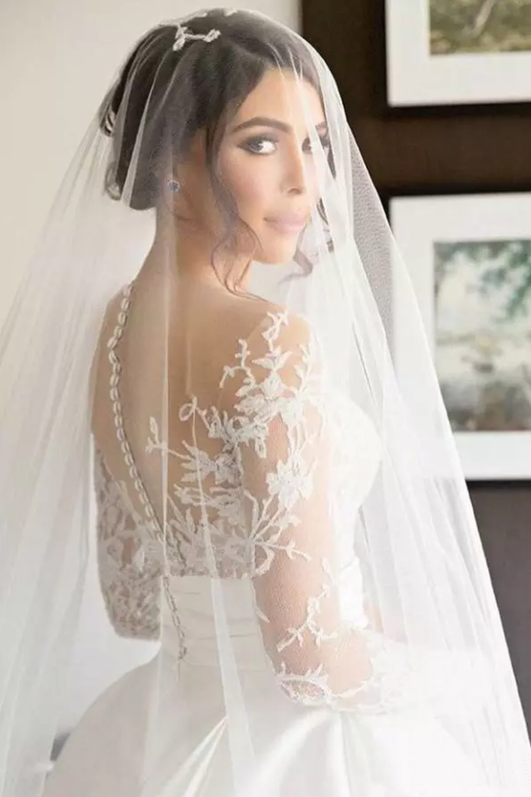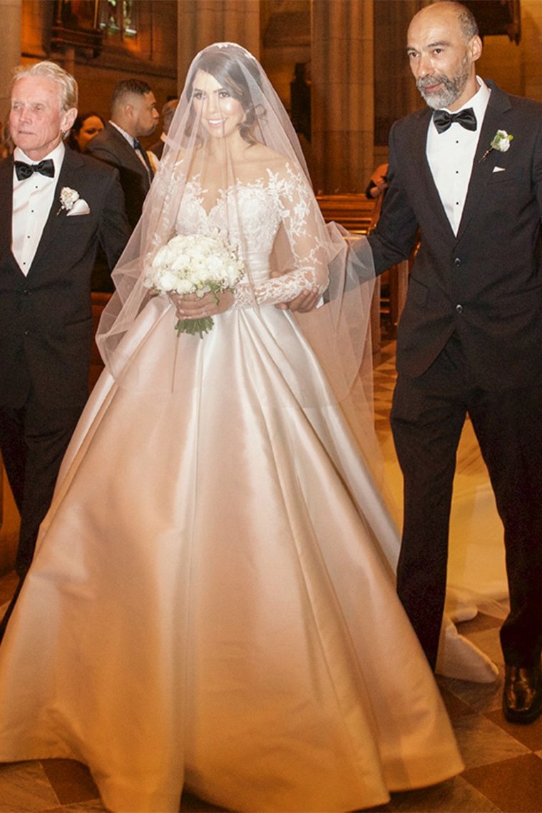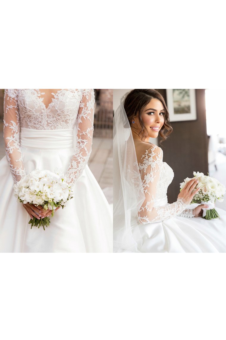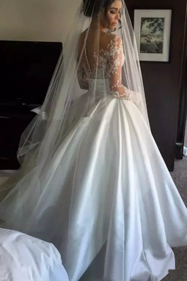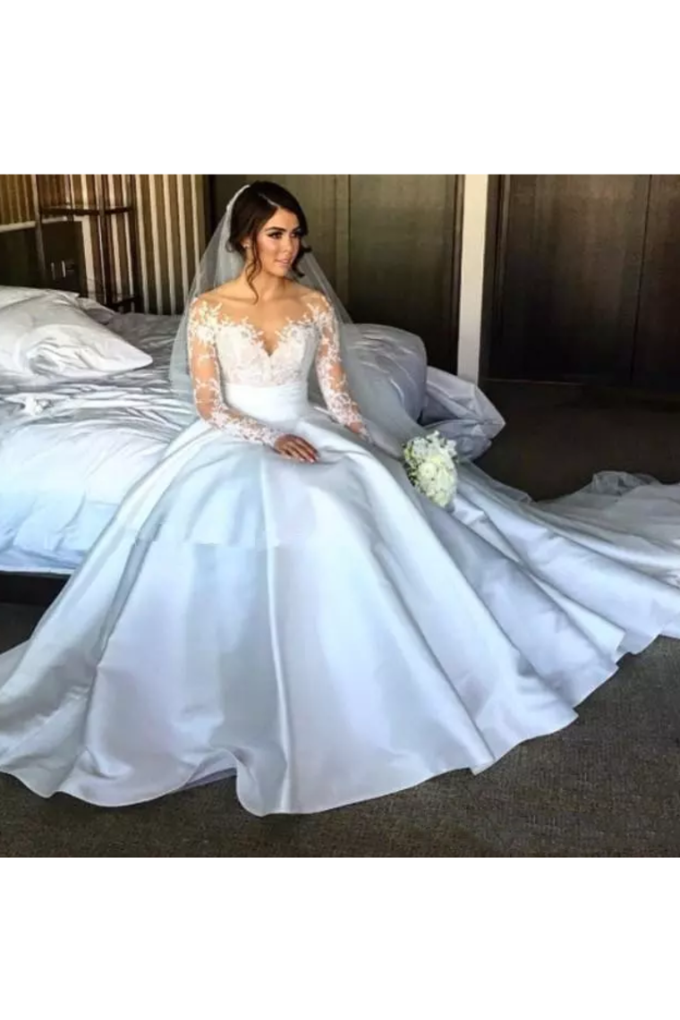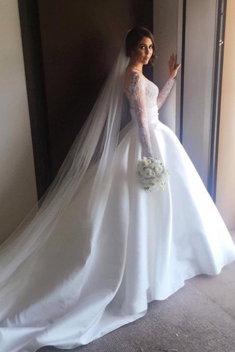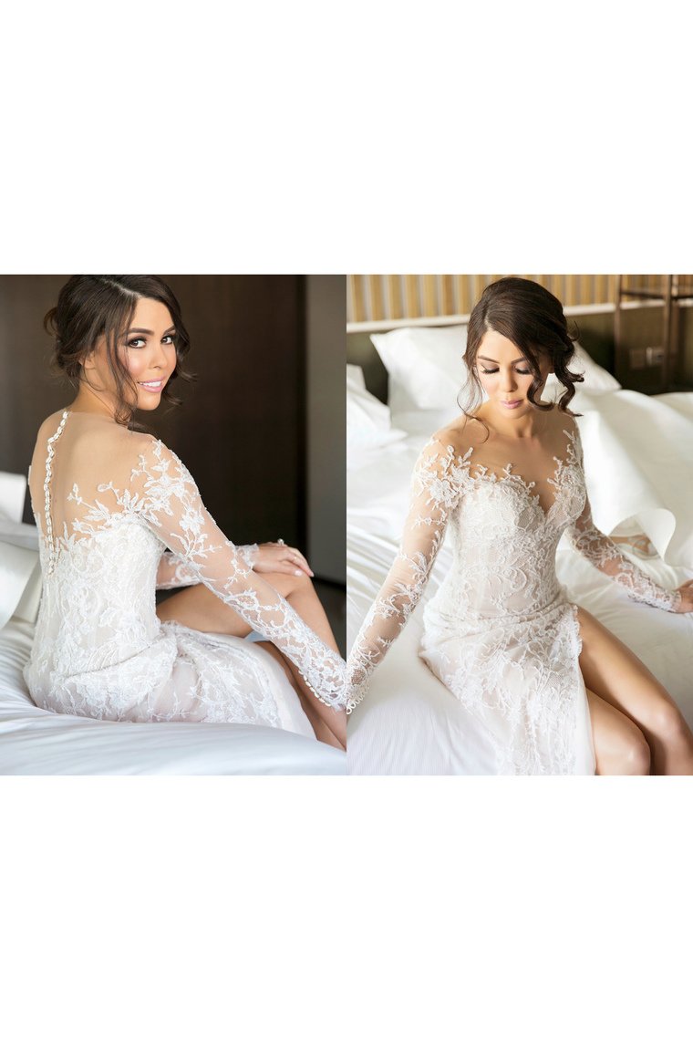 2024 Scoop Long Sleeves Lace With Slit Wedding Dresses Chapel Train Detachable