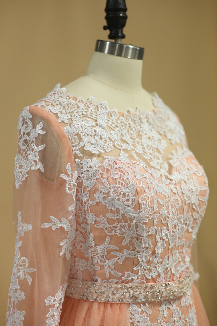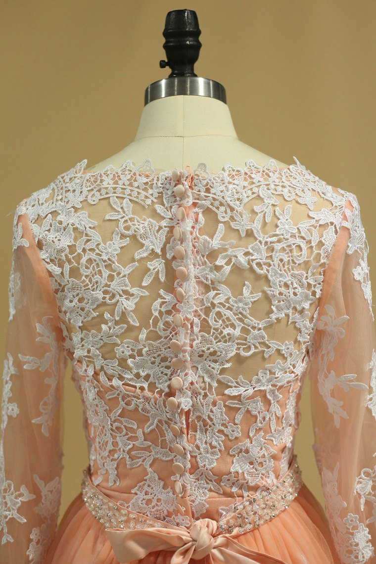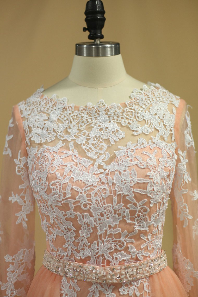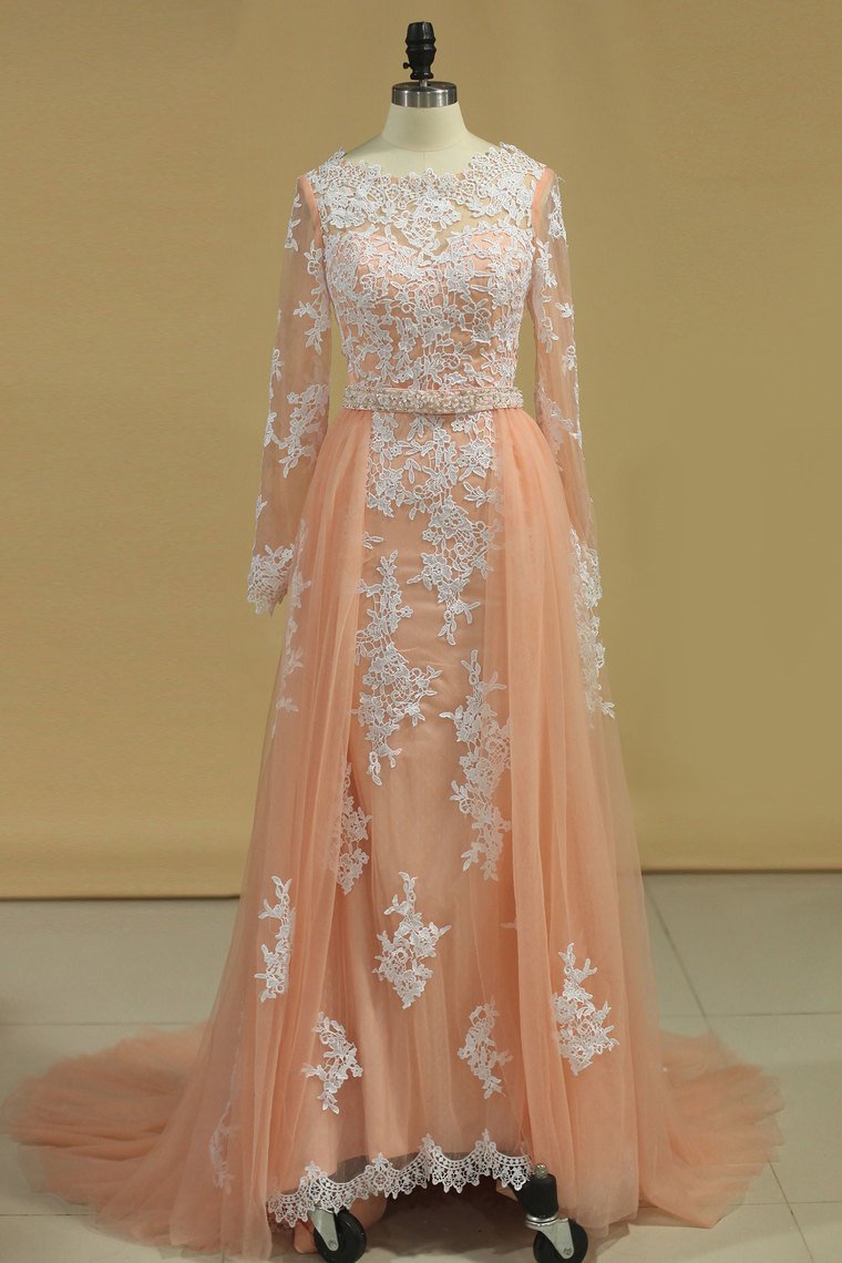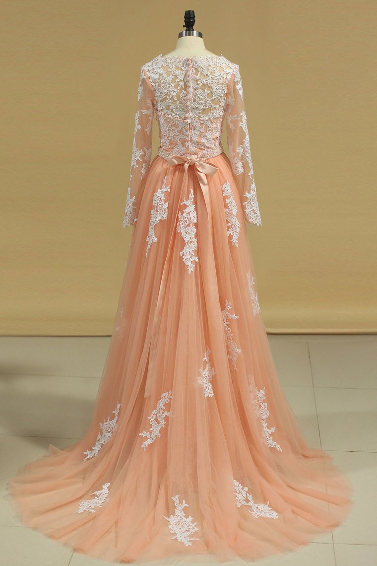 2024 Scoop Long Sleeves Wedding Dresses Mermaid Tulle With Applique And Sash