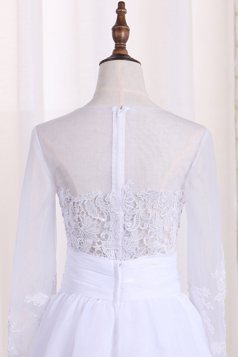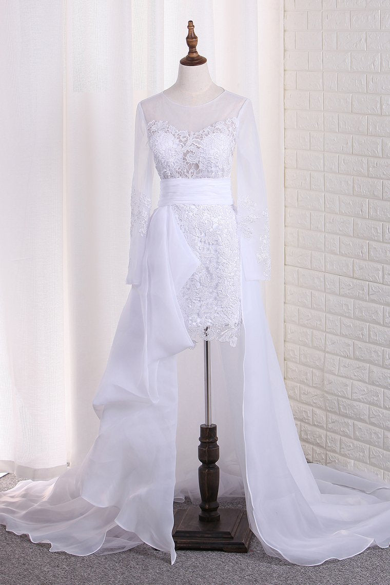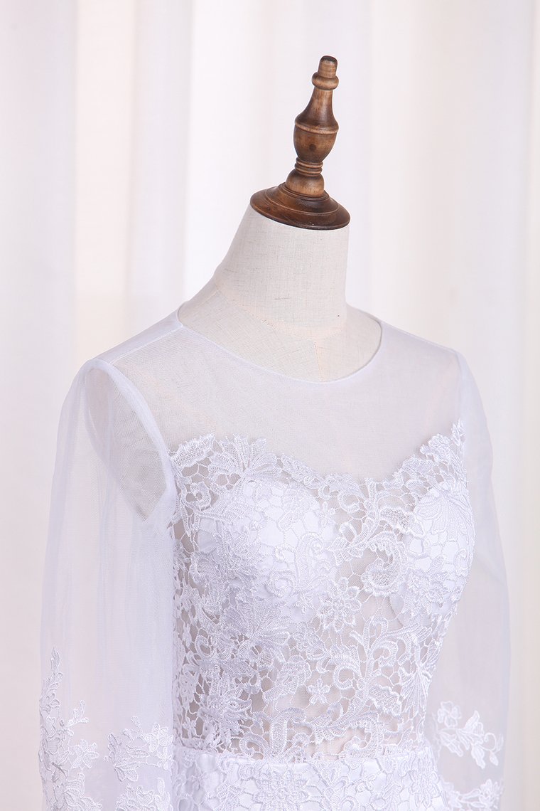 2024 Scoop Long Sleeves Wedding Dresses Tulle & Organza With Applique Sweep Train Detachable