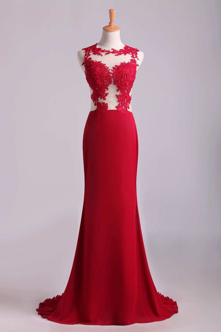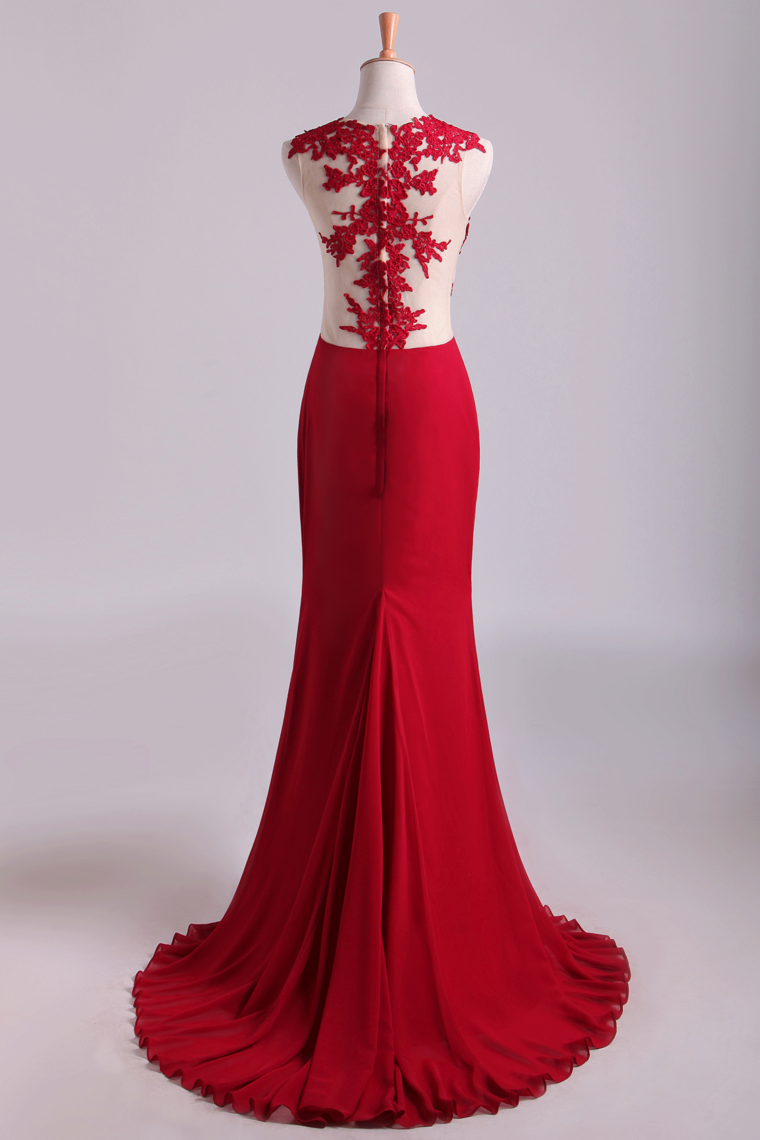 2024 Scoop Mermaid Wedding/Prom Dresses With Applique Chiffon