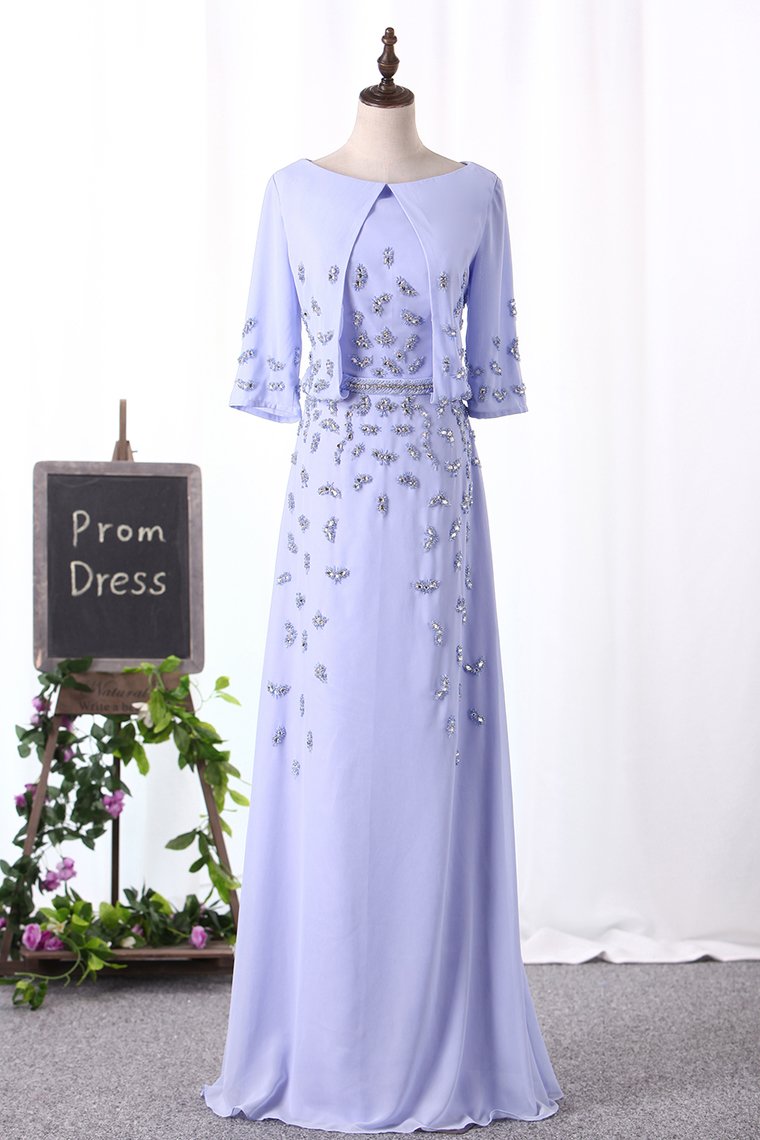 2024 Scoop Mother Of The Bride Dresses Mid-Length Sleeves A Line With Beads