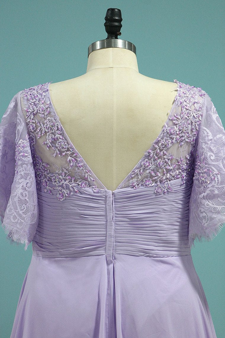 2024 Scoop Mother Of The Bride Dresses Short Sleeves With Applique Chiffon
