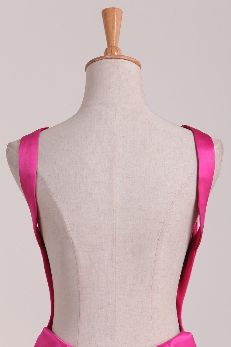 2024 Scoop Open Back Knee Length Satin Sheath Cocktail Dresses