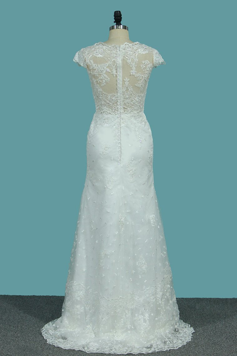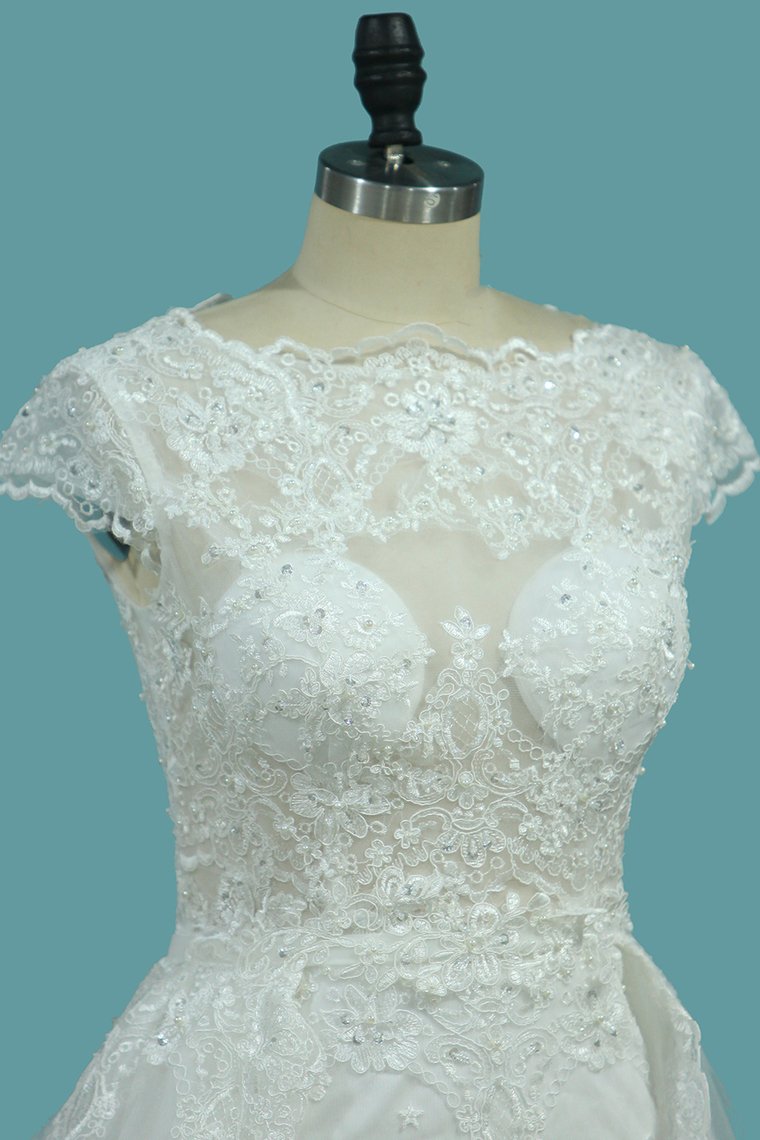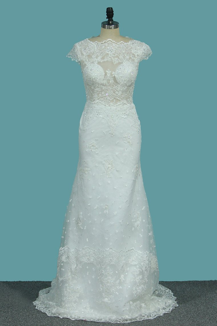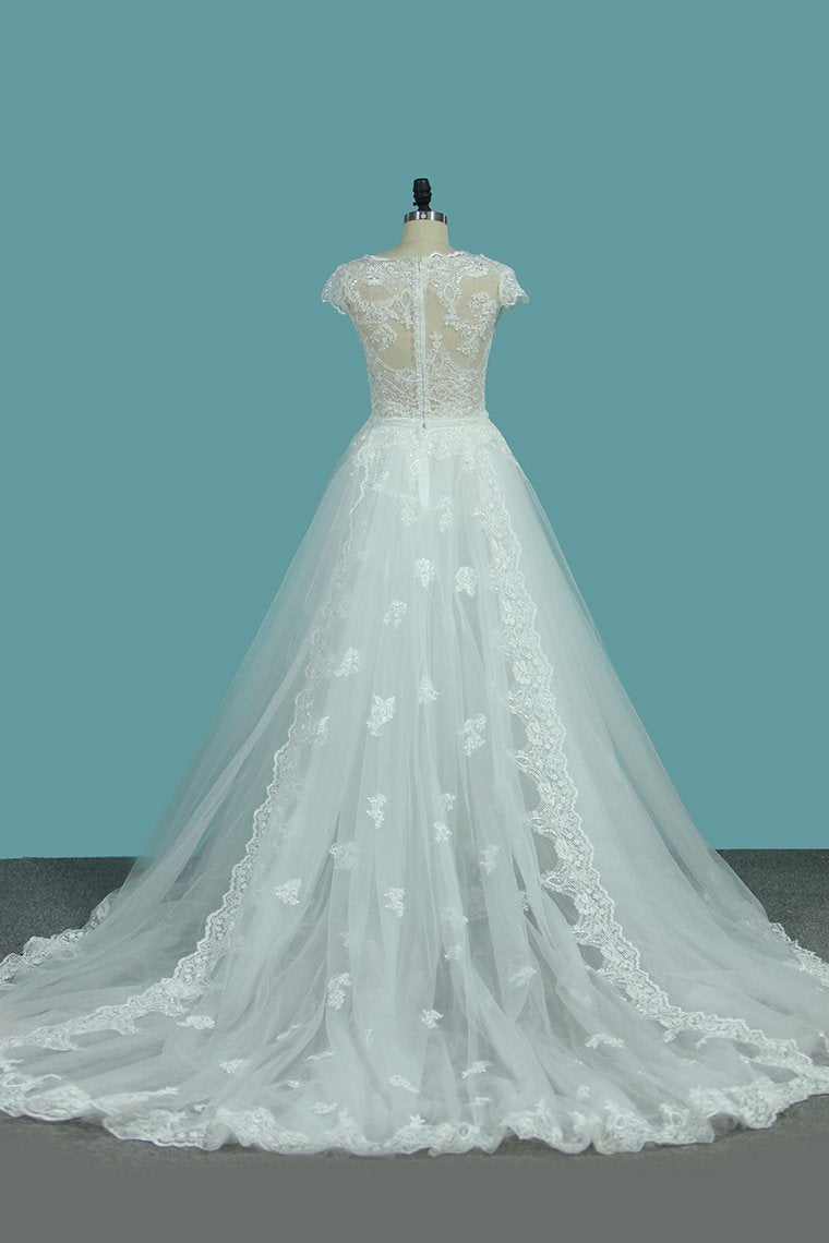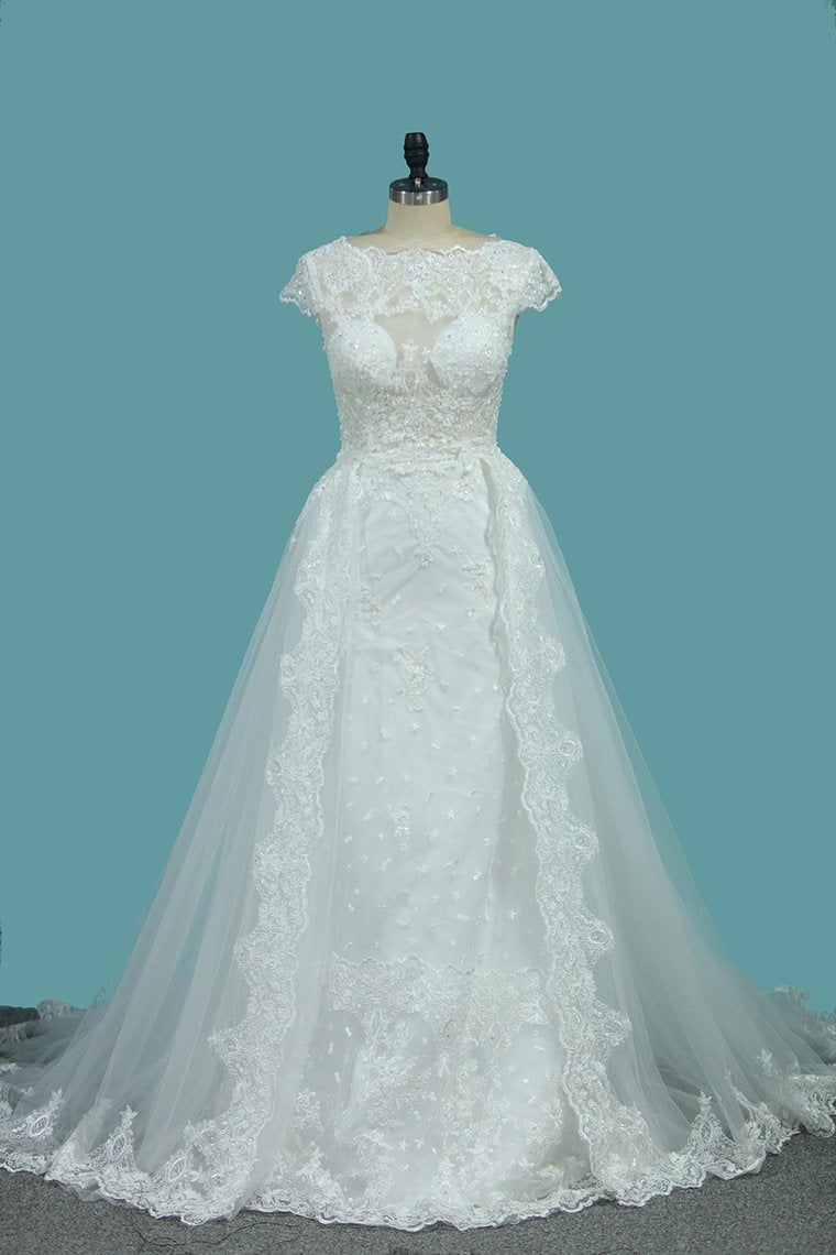 2024 Scoop Tulle Mermaid Wedding Dresses With Applique Royal Train Detachable