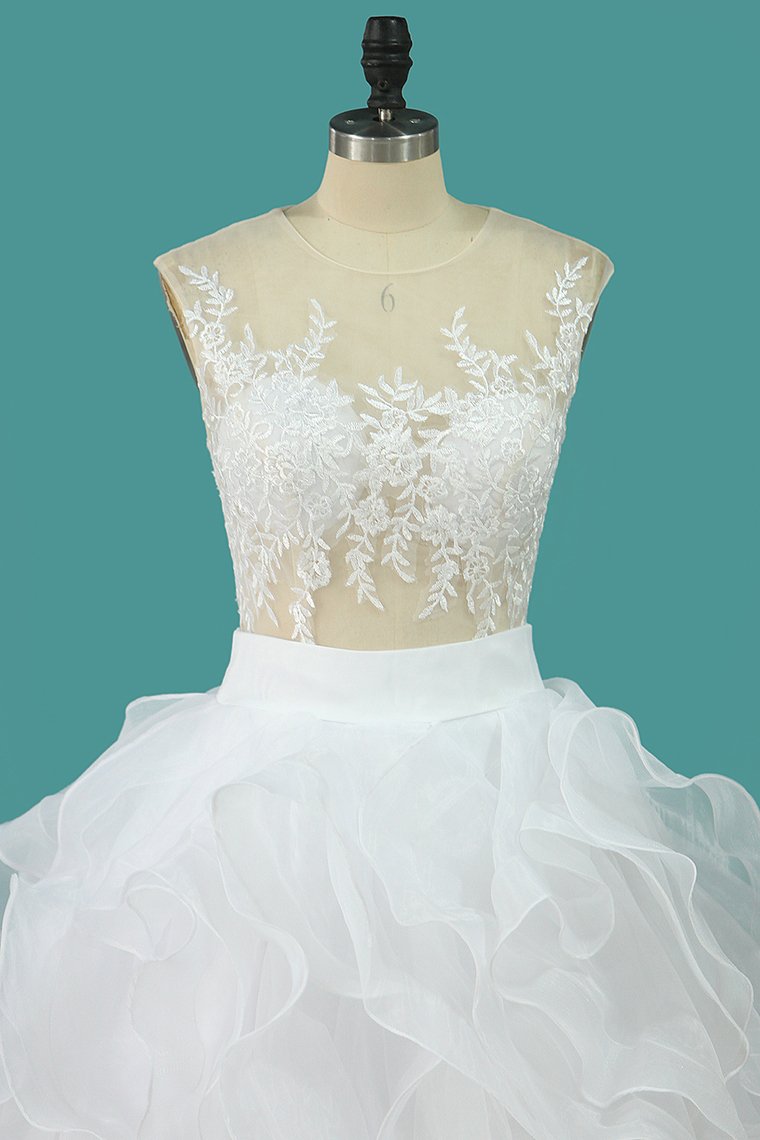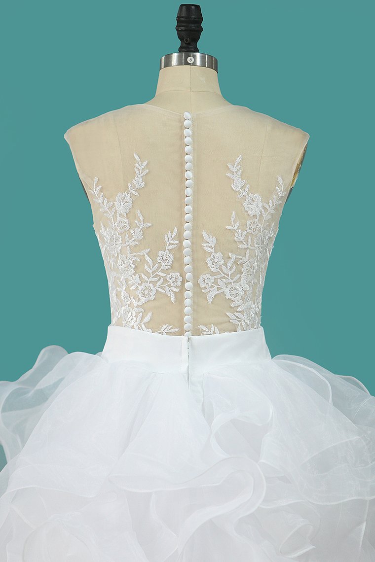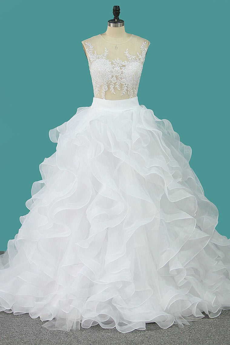 2024 Scoop Tulle With Applique Detachable Wedding Dresses Zipper Up