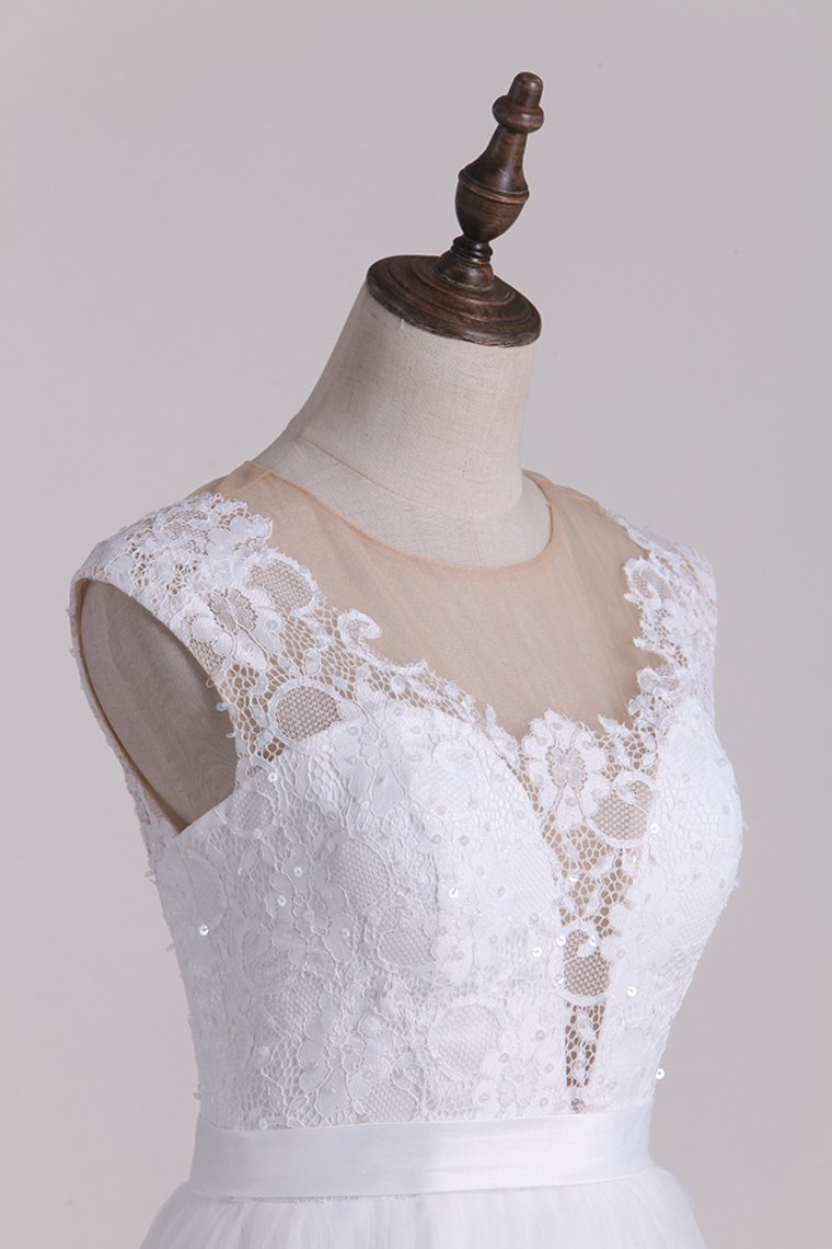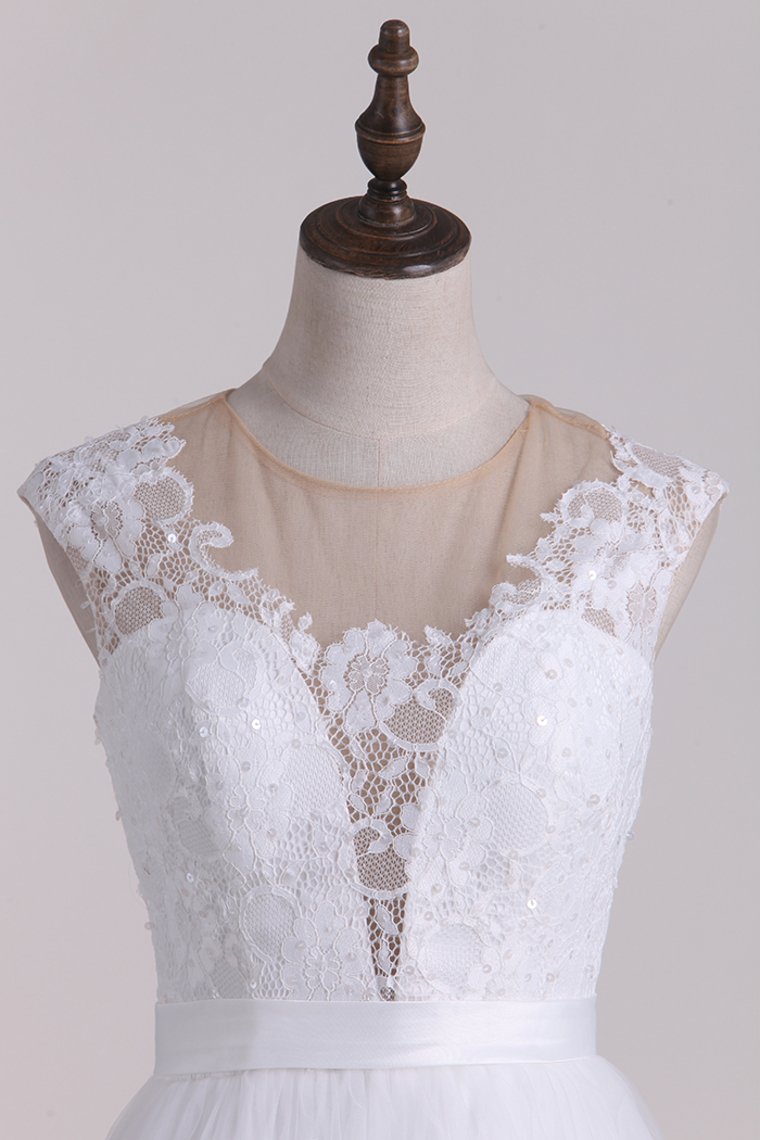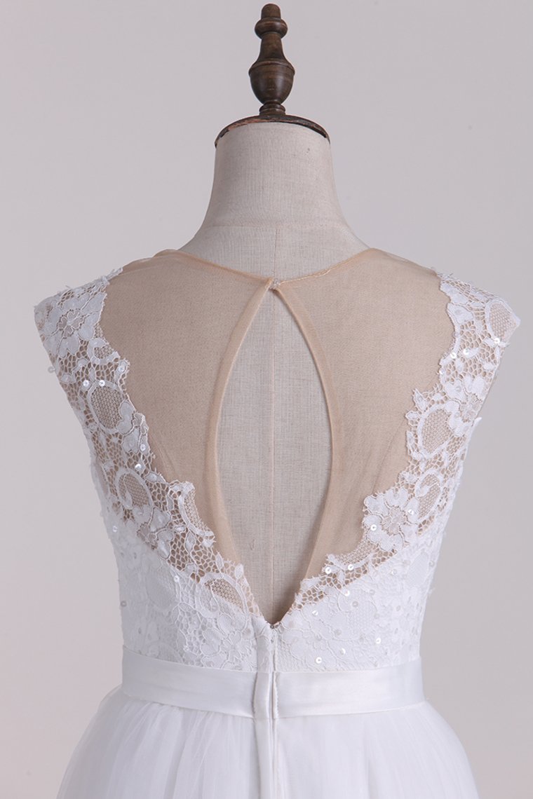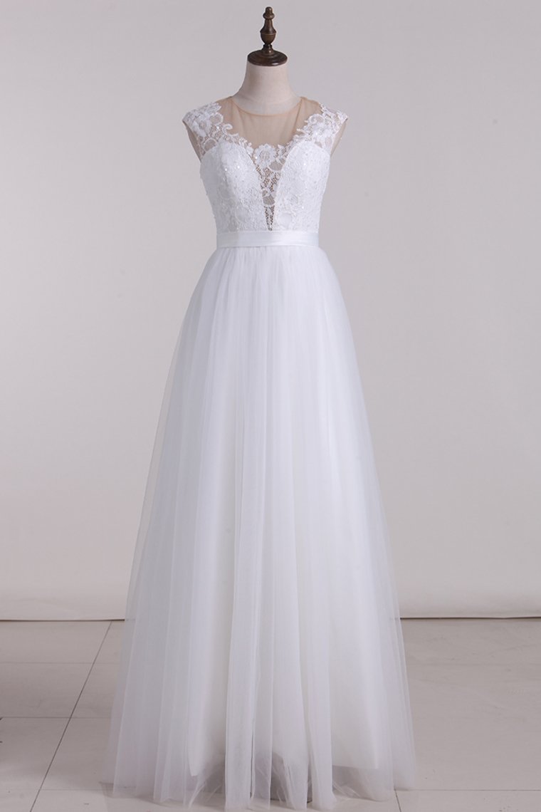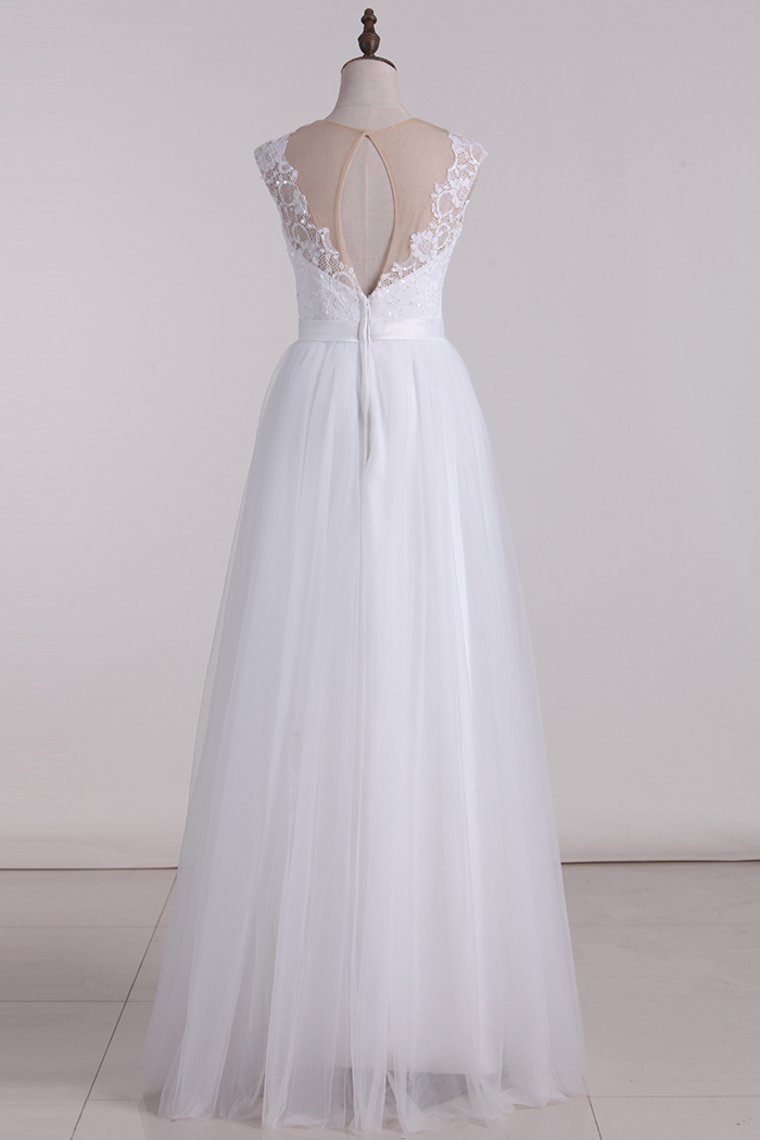 2024 Scoop Wedding Dresses Open Back A Line Tulle Floor Length