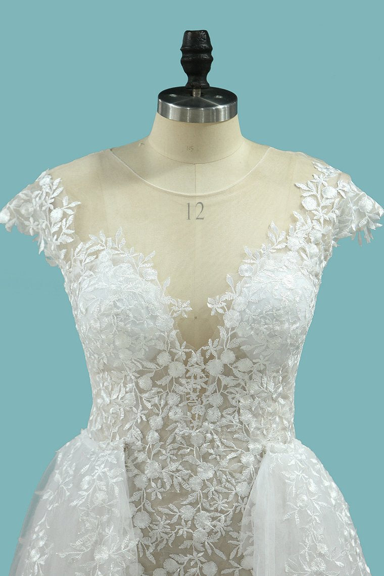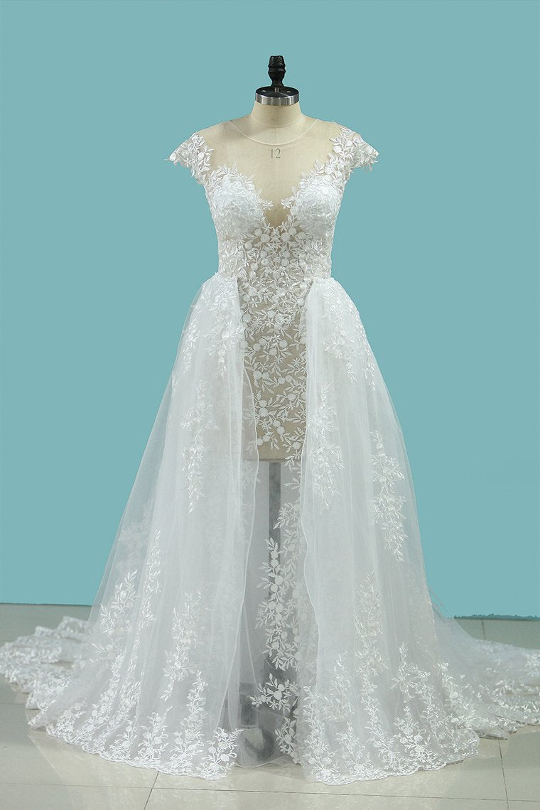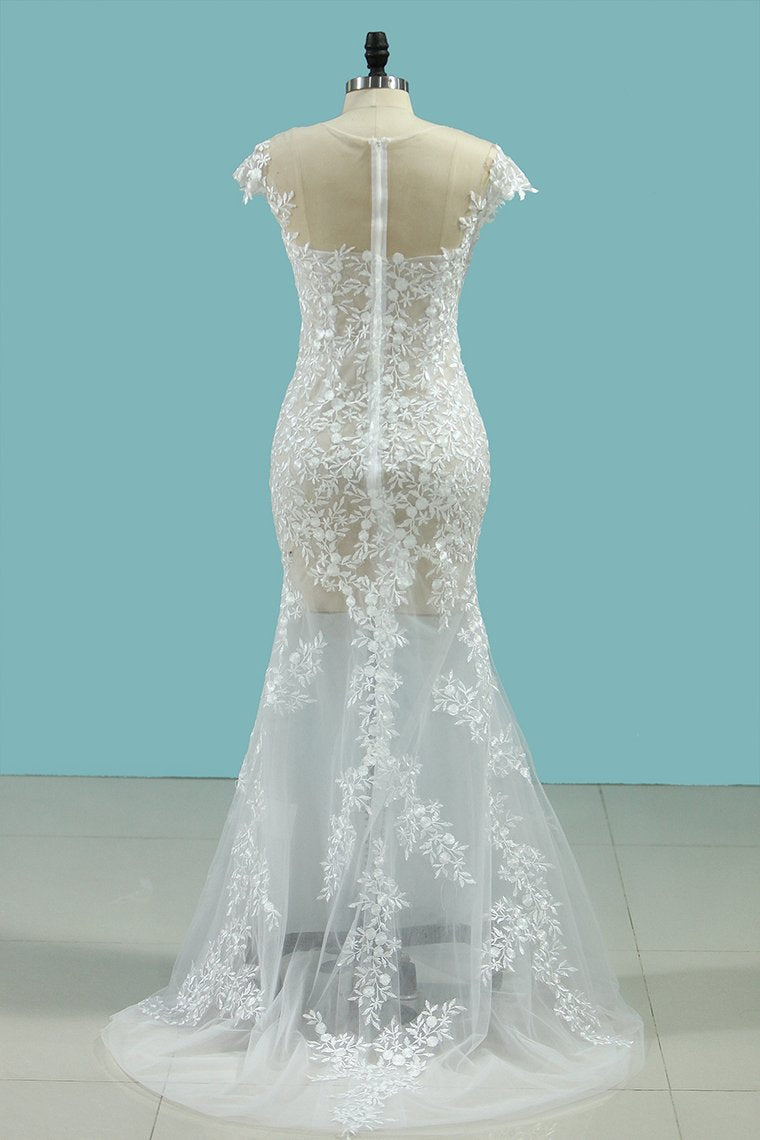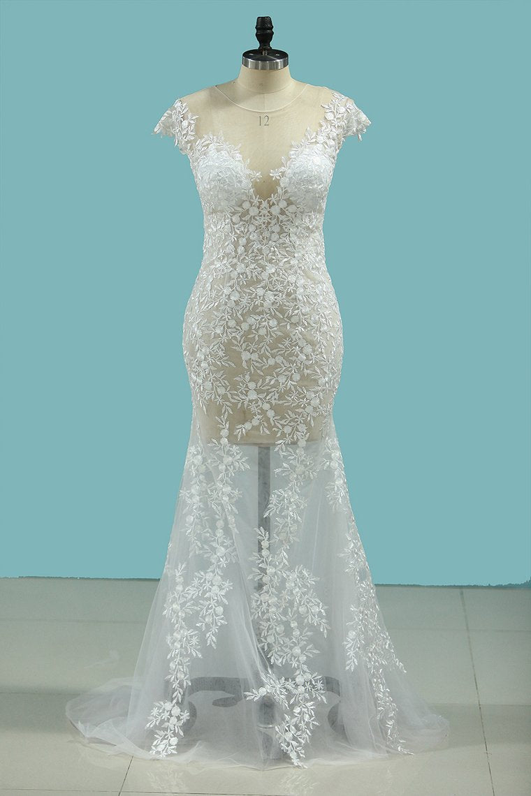 2024 Sexy Beach Scoop Wedding Dresses Sheath Lace See-Through