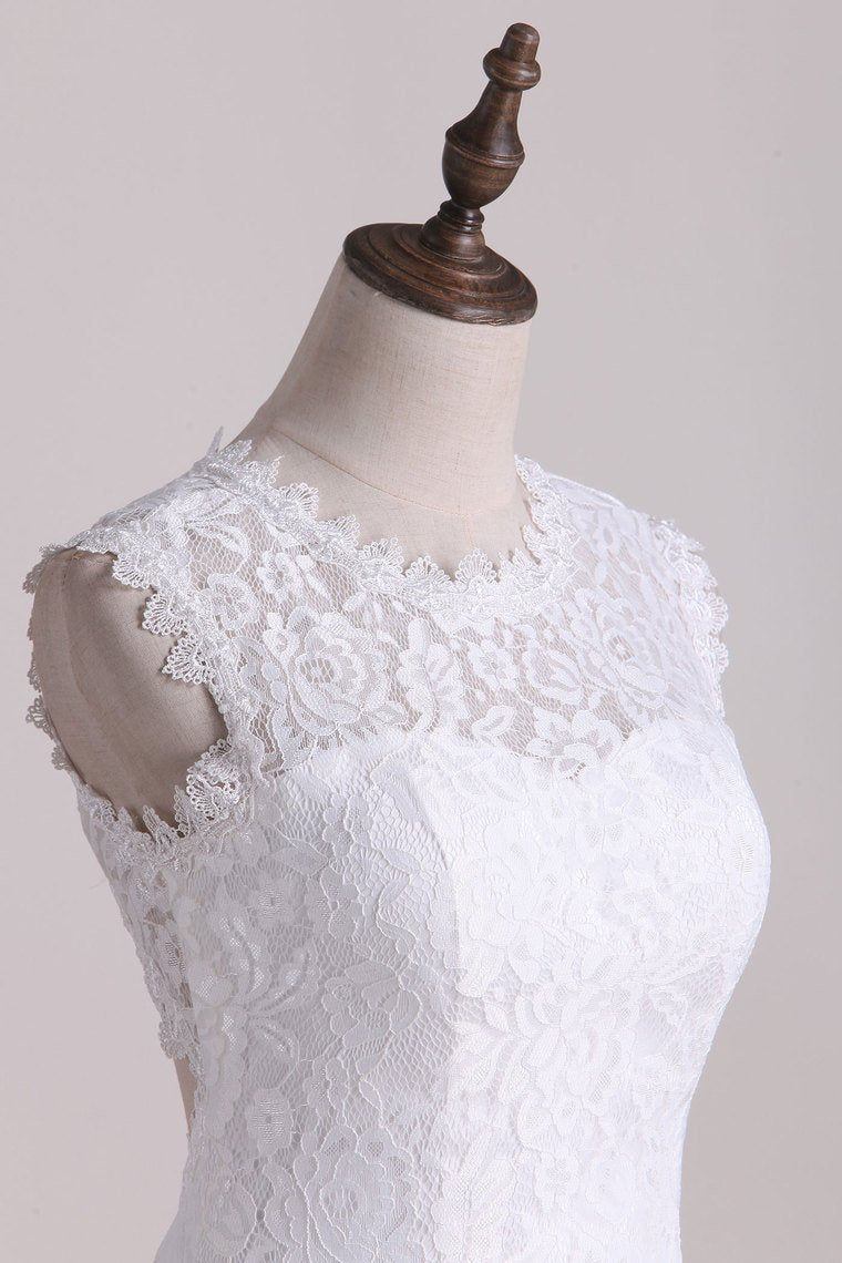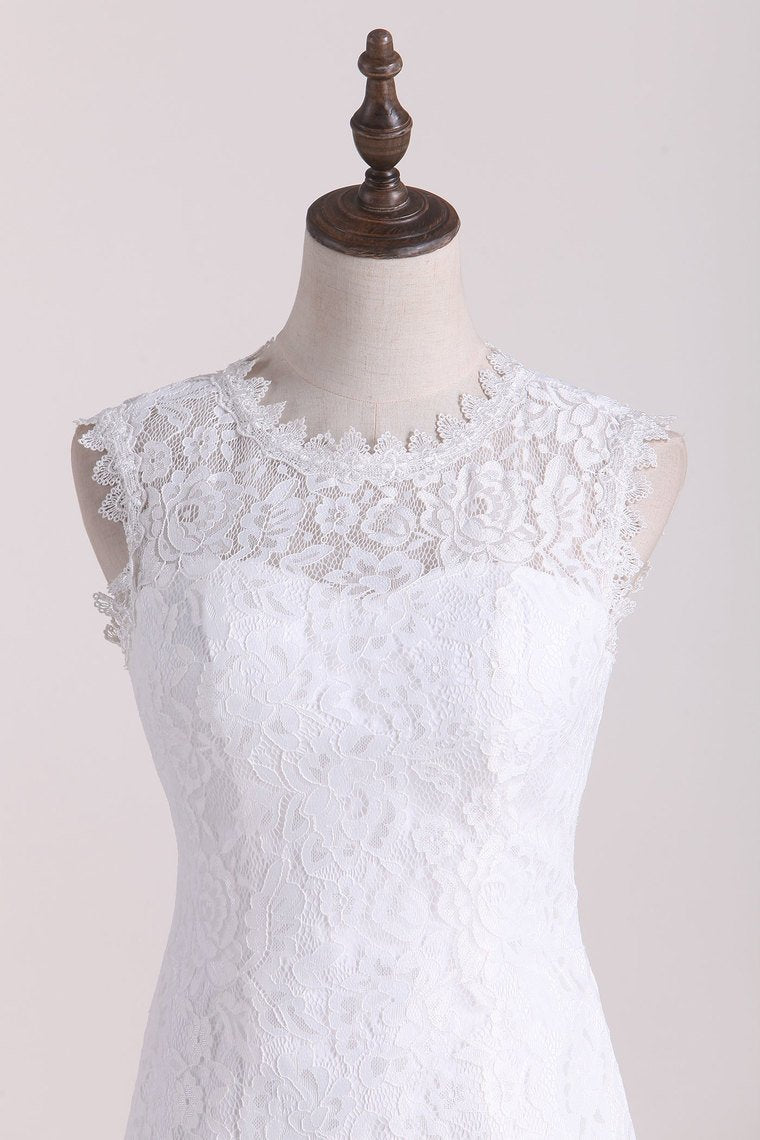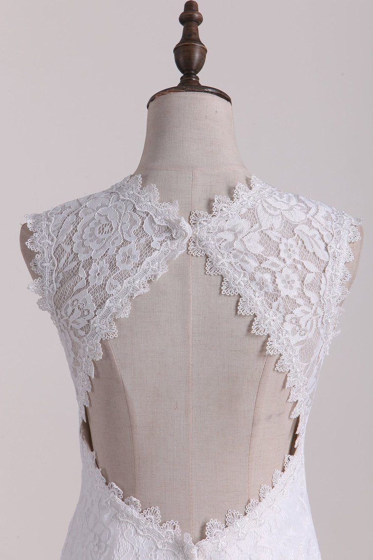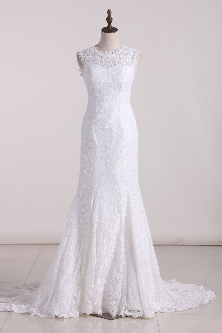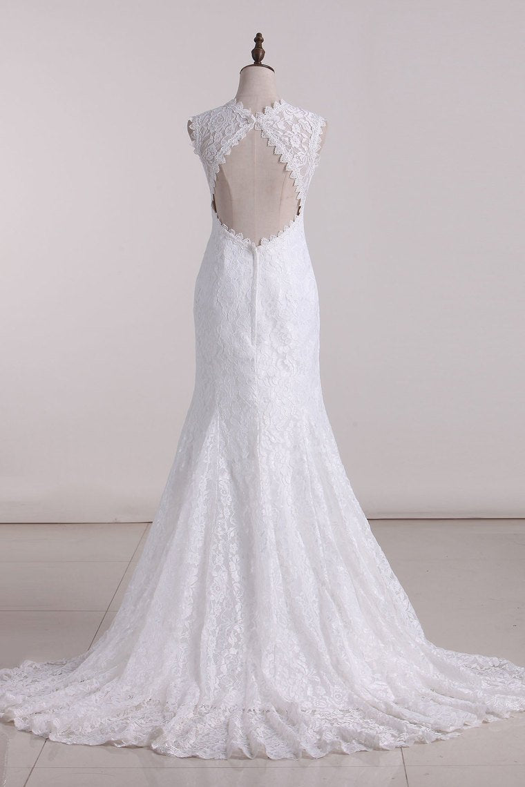 2024 Sexy Open Back Scoop Mermaid Lace Sweep Train Wedding Dresses
