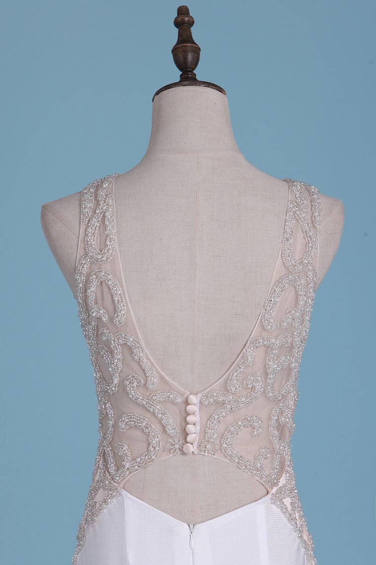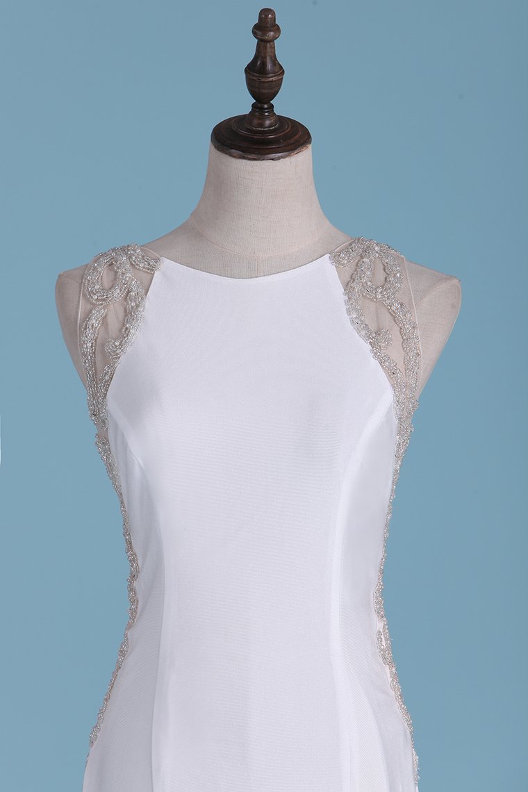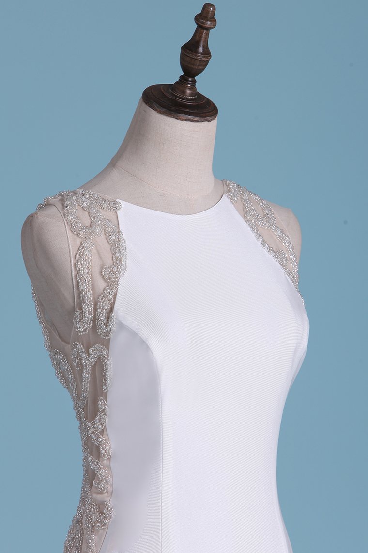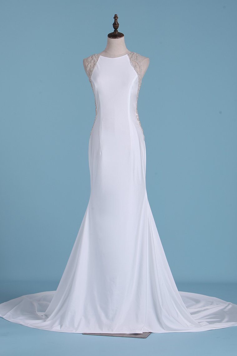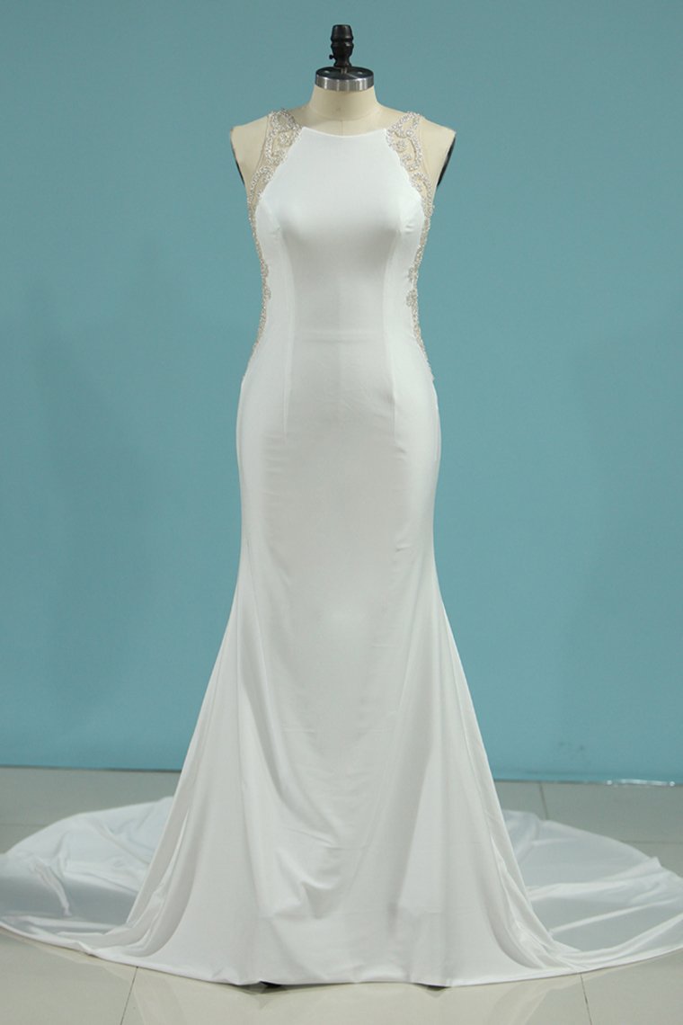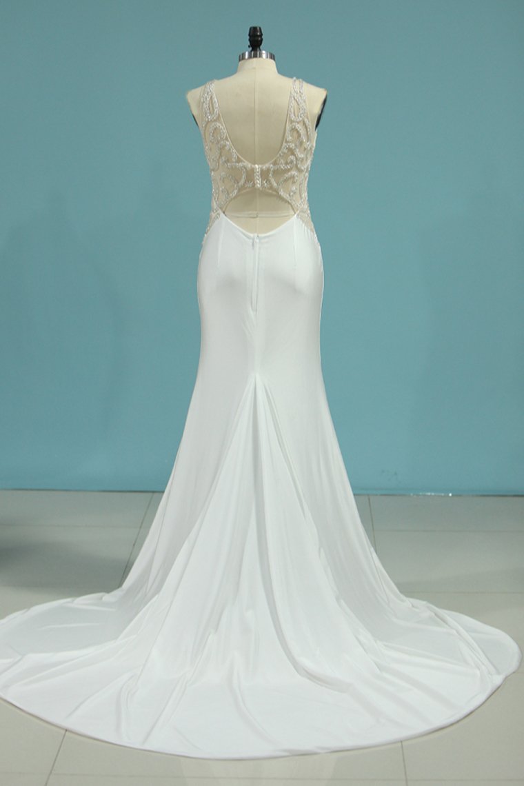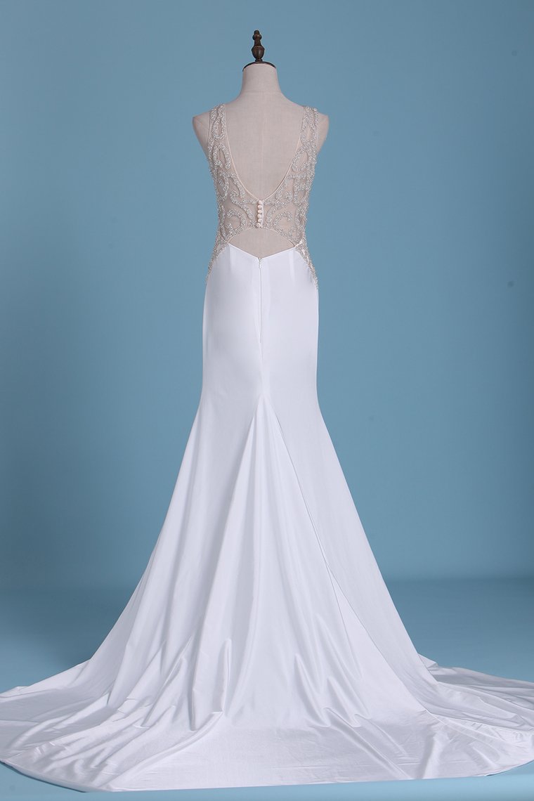 2024 Sexy Open Back Scoop Spandex With Beading Mermaid Wedding Dresses