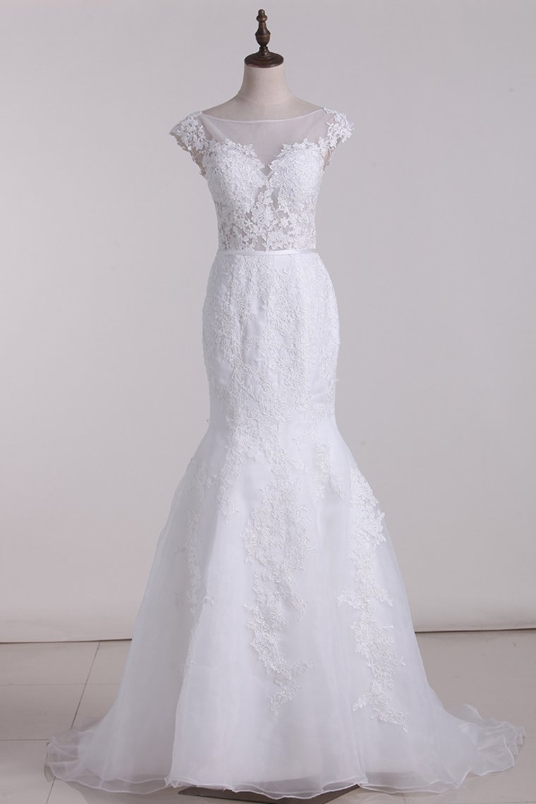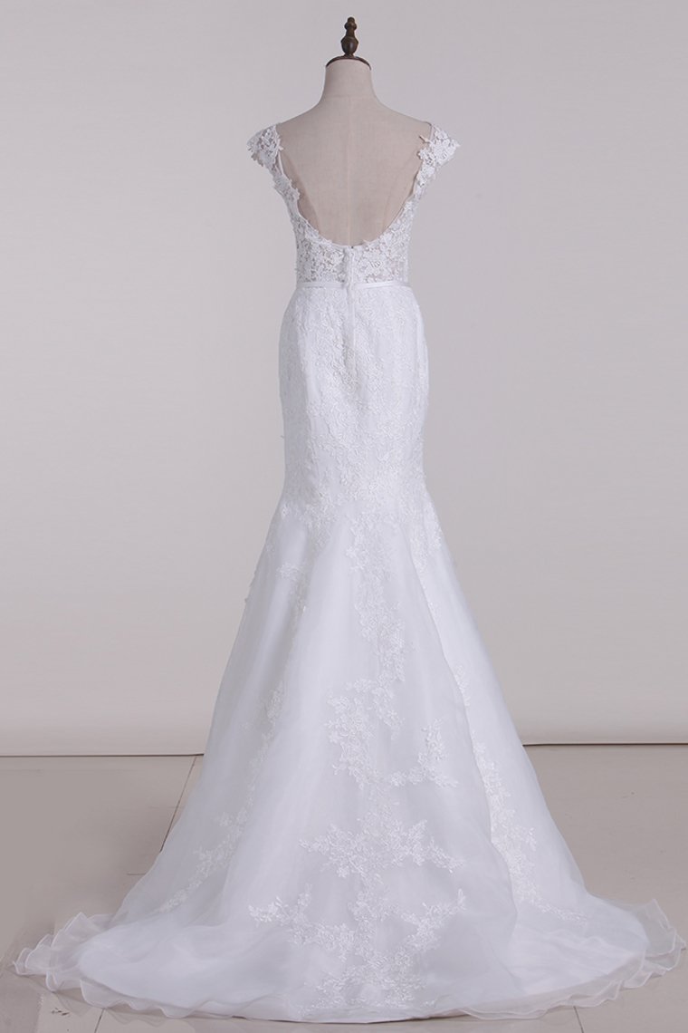 2024 Sexy Open Back Scoop With Applique Organza Mermaid Wedding Dresses