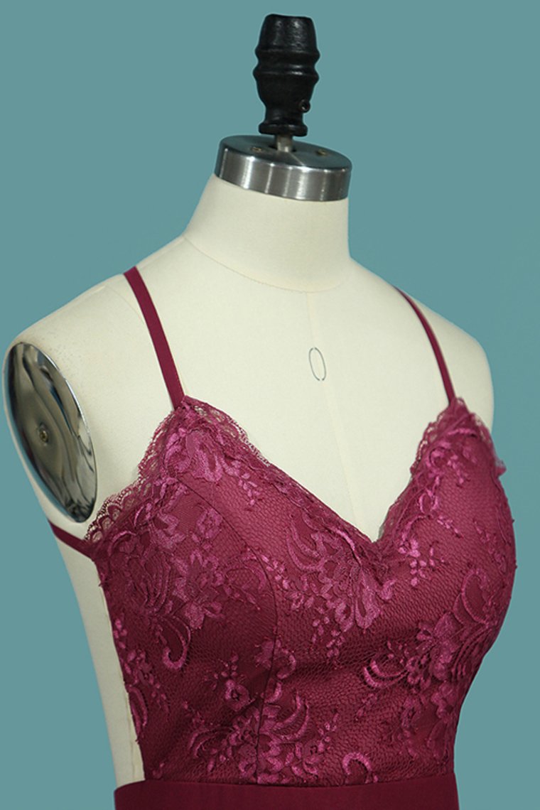 2024 Sexy Open Back Spaghetti Straps Cocktail Dresses A Line Chiffon & Lace