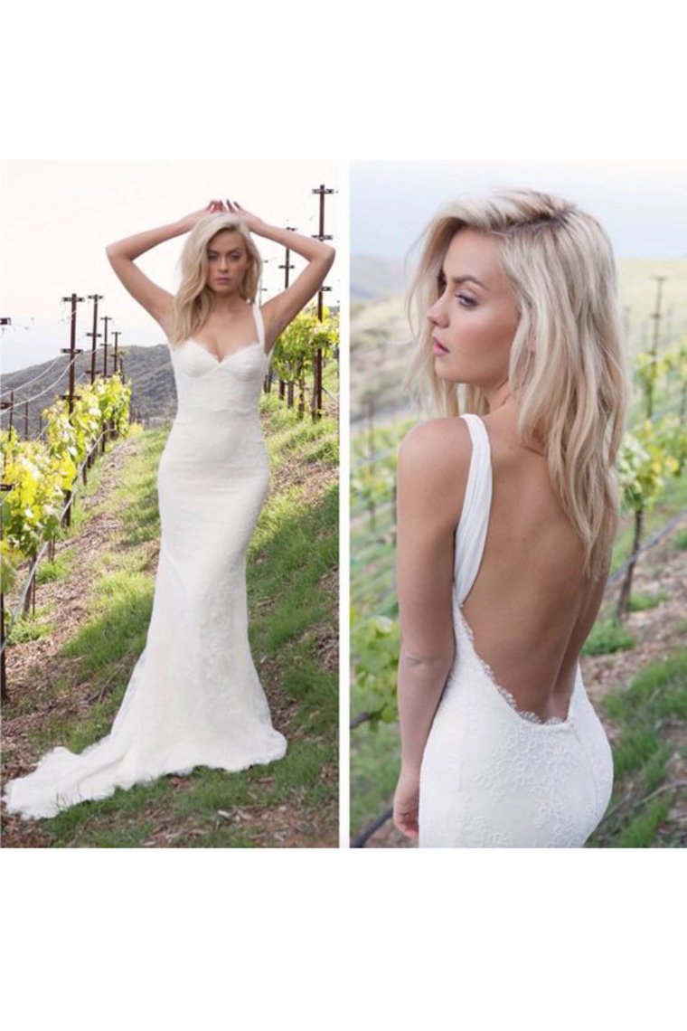 2024 Sexy Open Back Straps Mermaid Lace Sweep Train Wedding Dresses