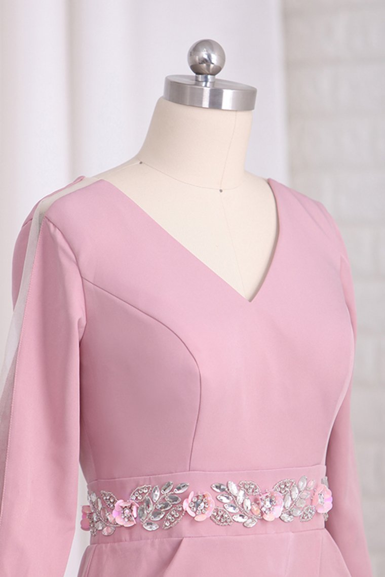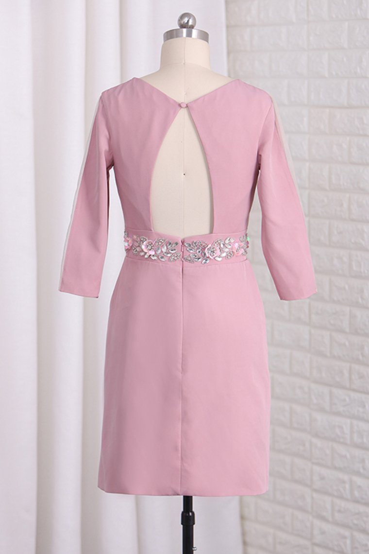 2024 Sexy Open Back V Neck Cocktail Dresses Satin With Beads Sheath