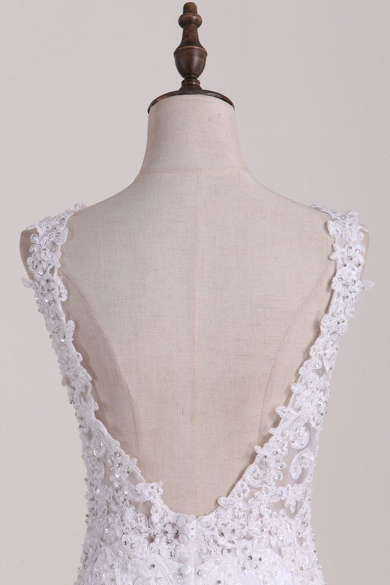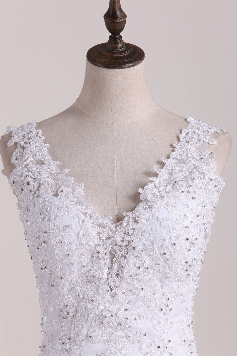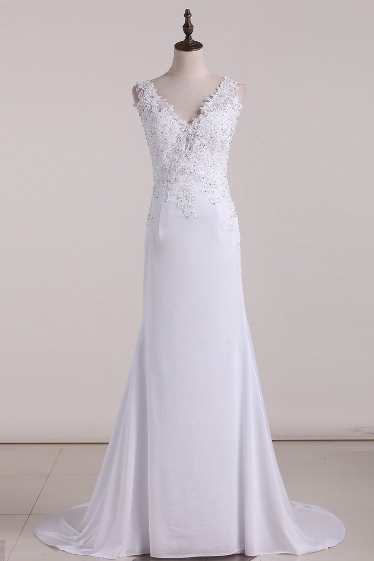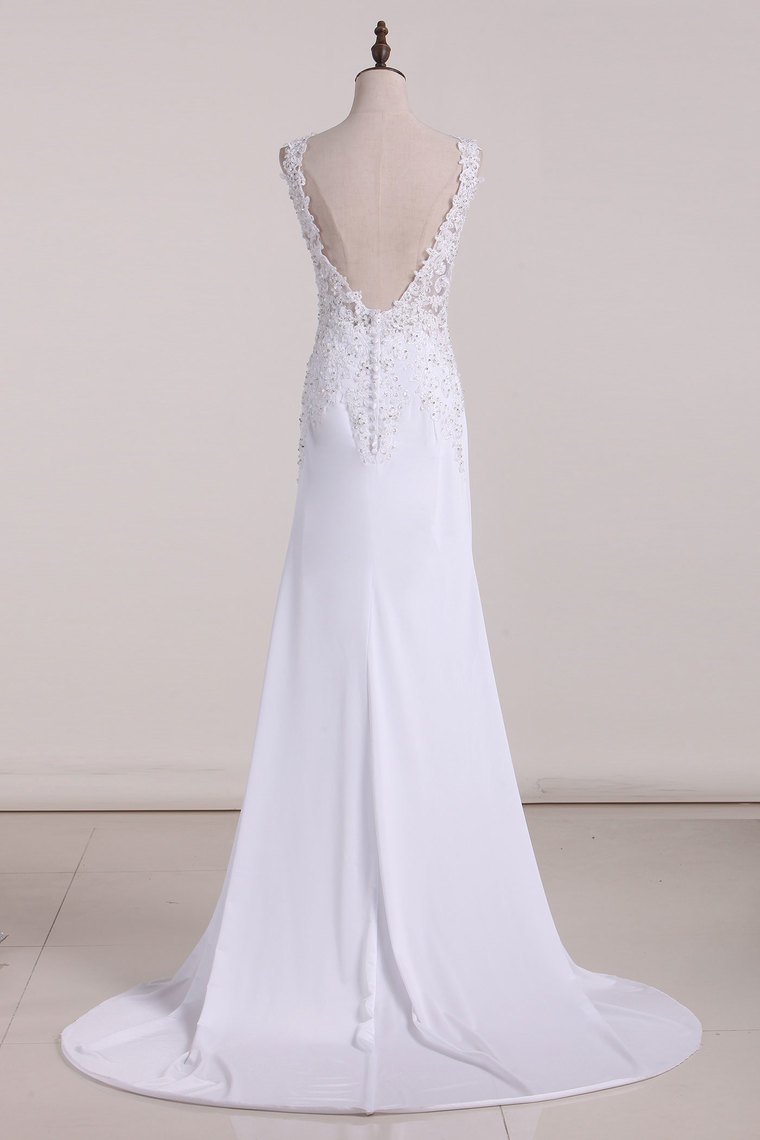 2024 Sexy Open Back V Neck Spandex Wedding Dresses Mermaid With Applique And Beads