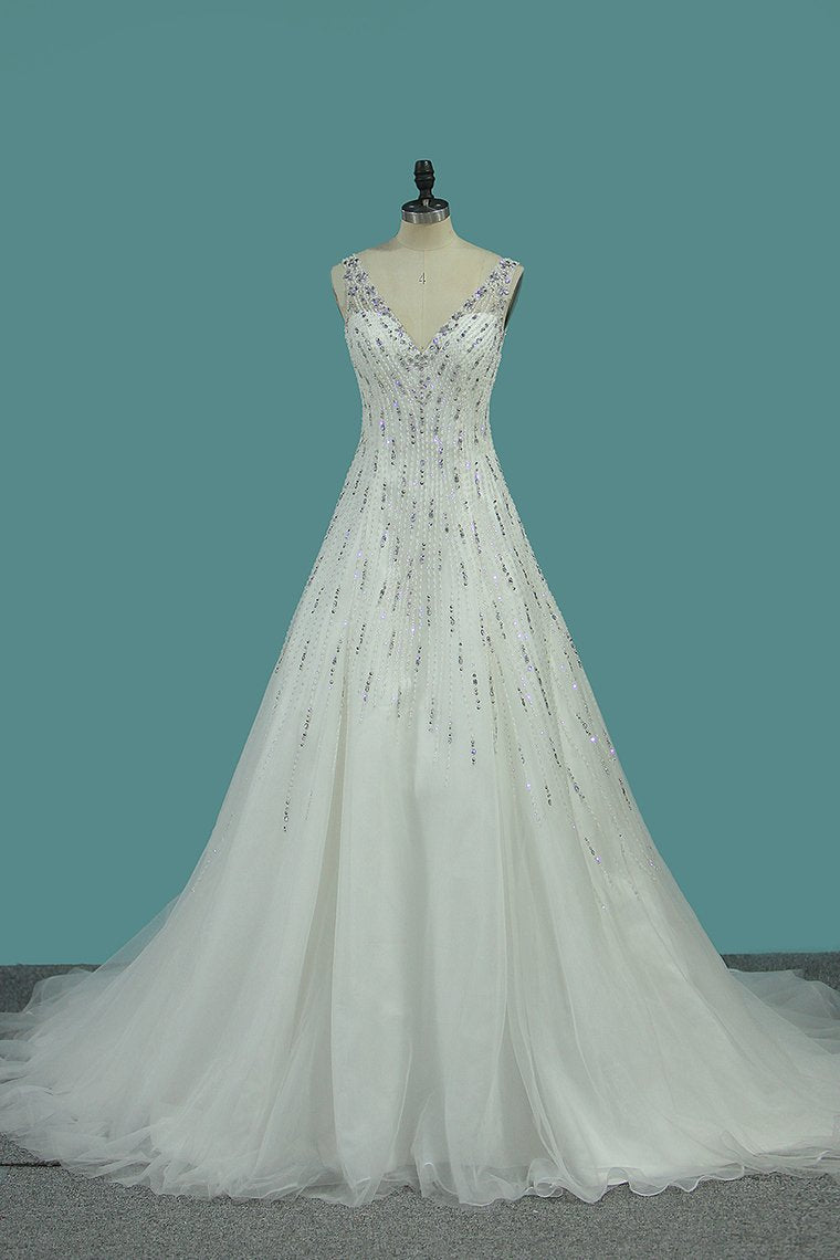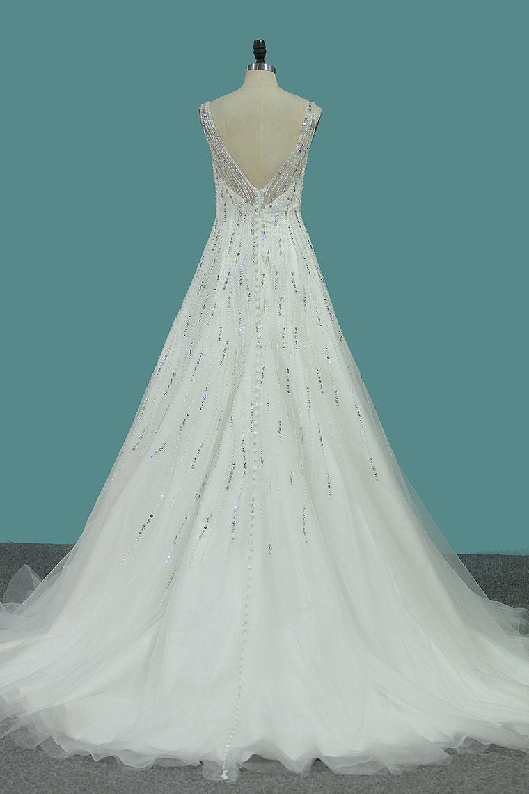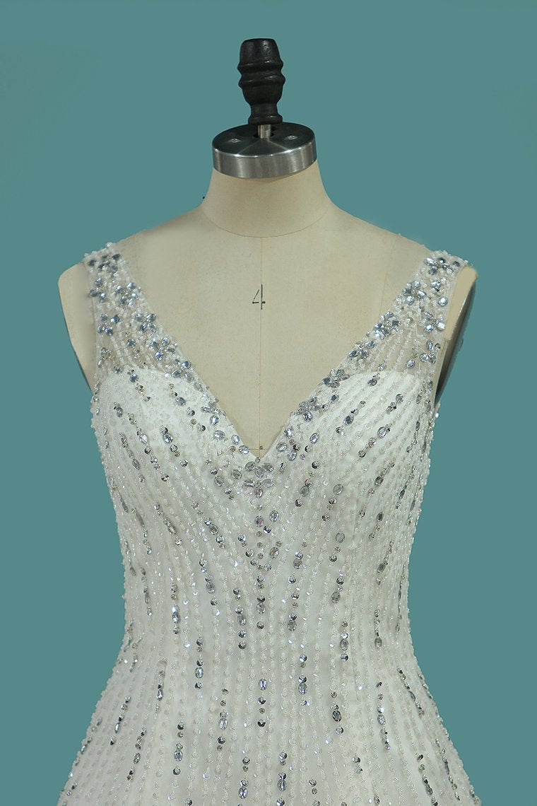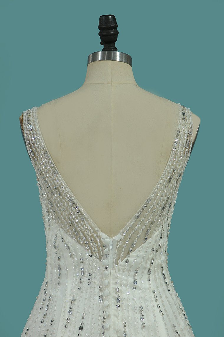 2024 Sexy Open Back Wedding Dresses A Line Organza V Neck With Beading