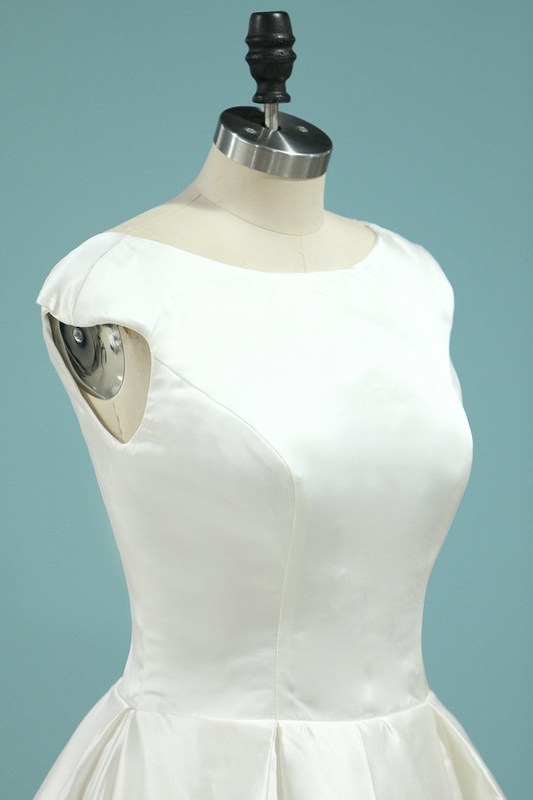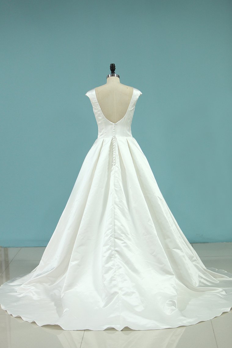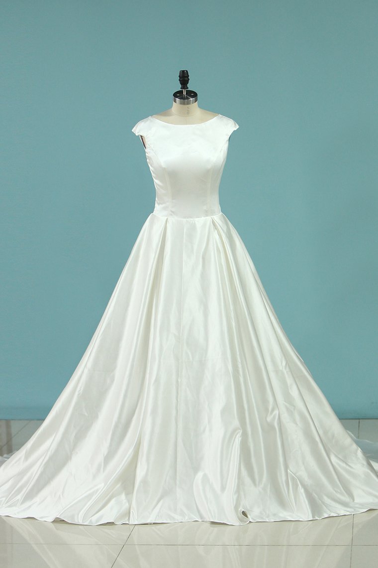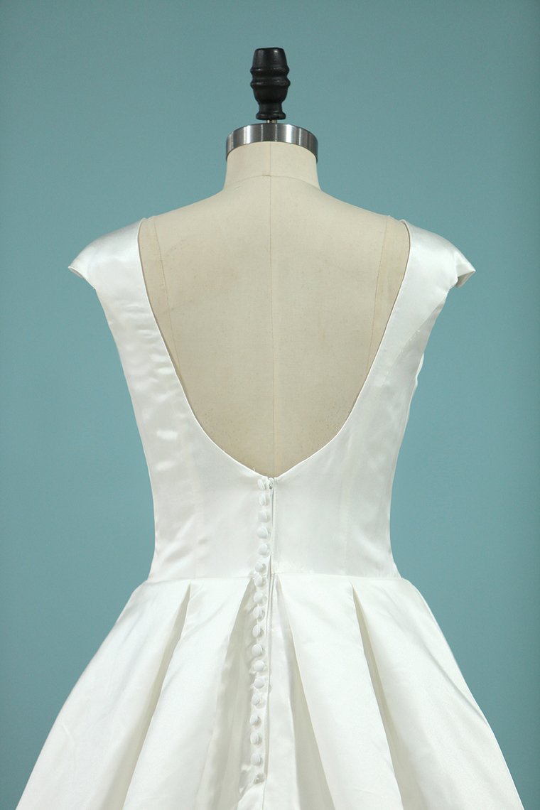 2024 Sexy Open Back Wedding Dresses A Line Scoop Satin Court Train