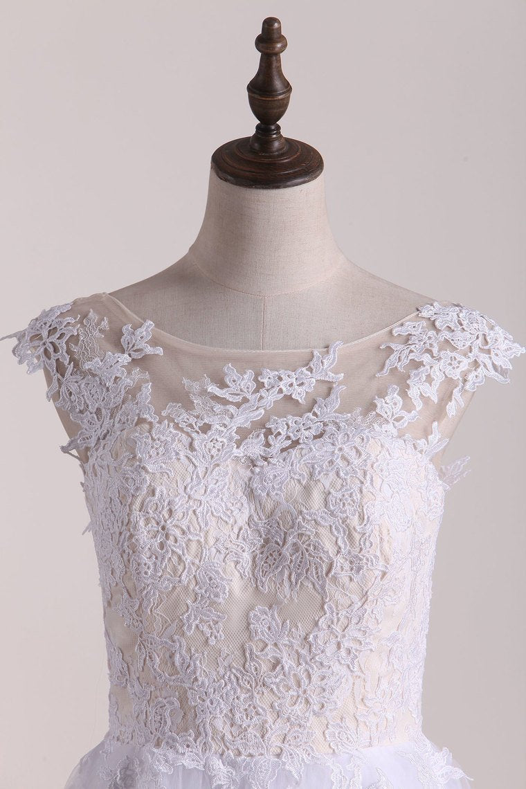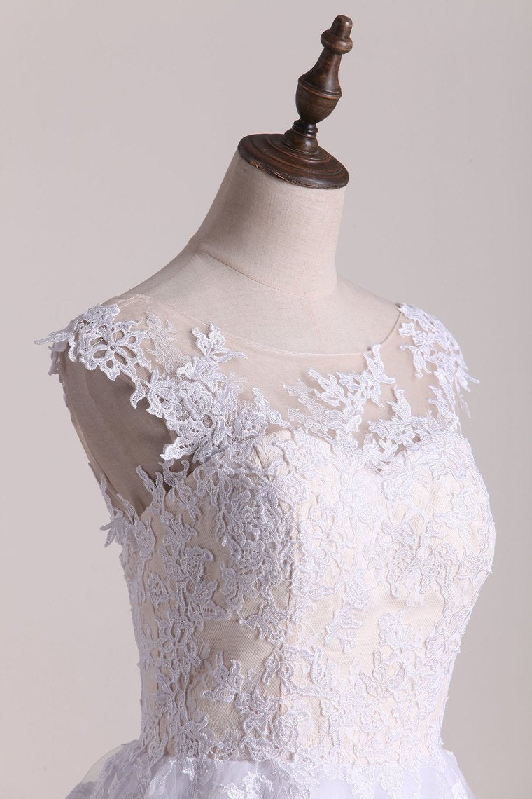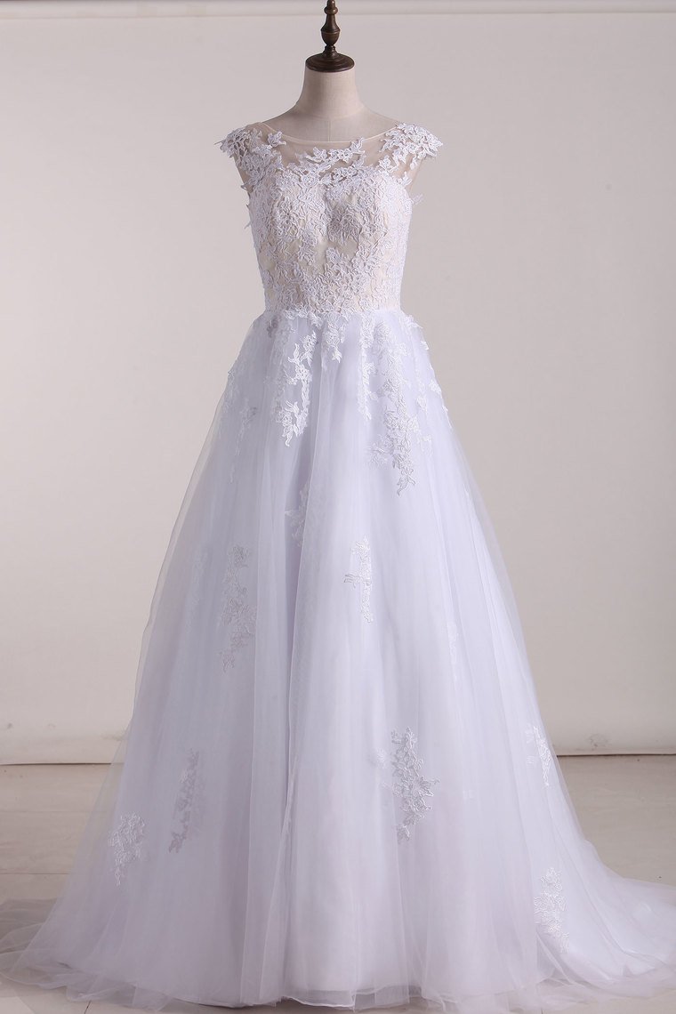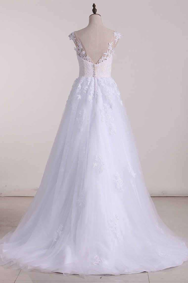 2024 Sexy Open Back Wedding Dresses Bateau Tulle With Applique A Line