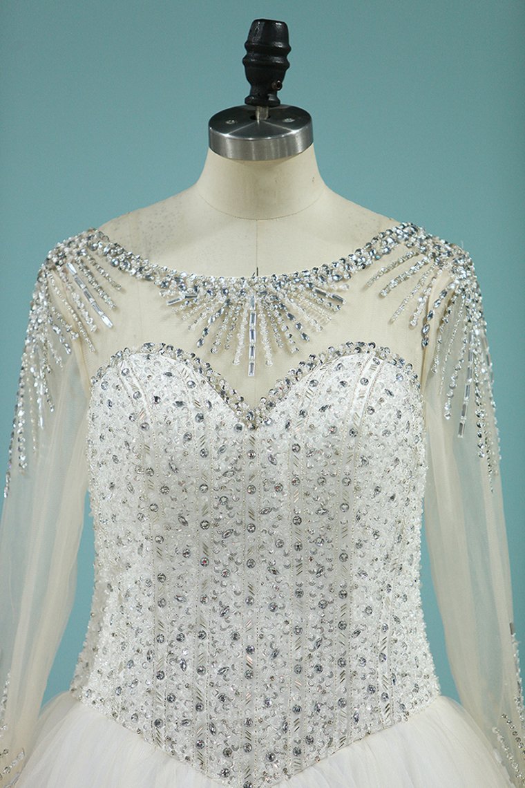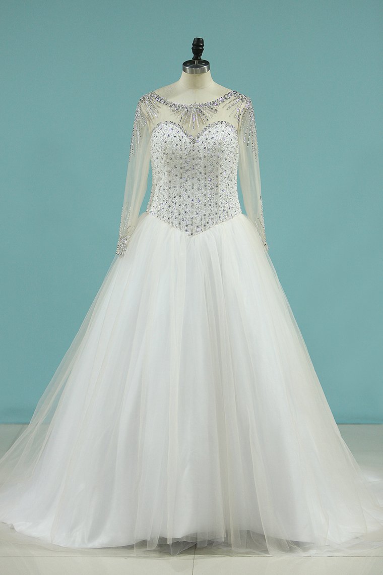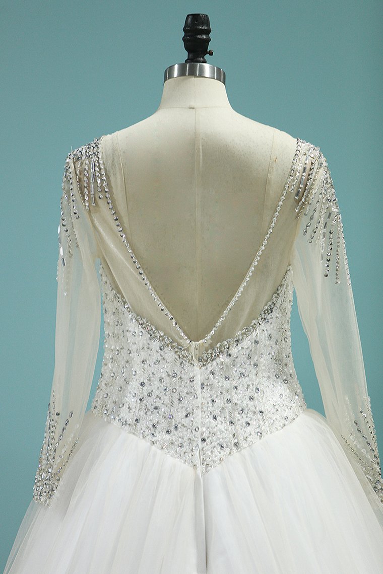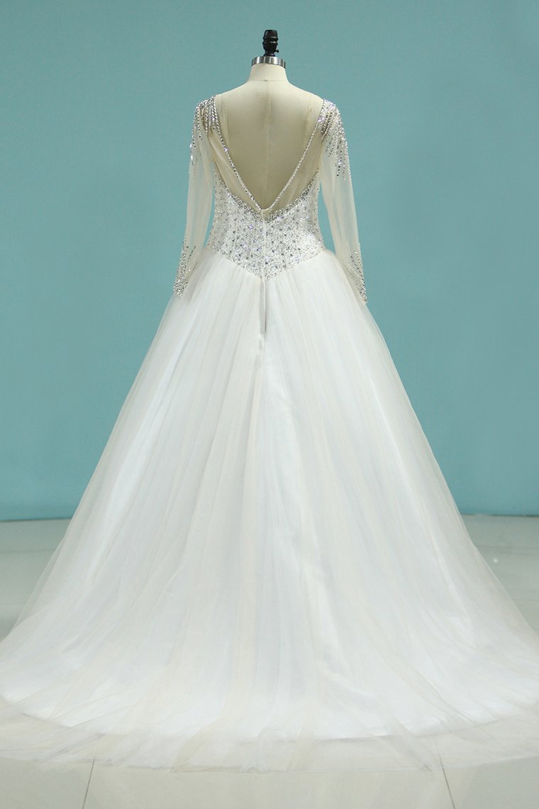 2024 Sexy Open Back Wedding Dresses Scoop A Line With Beading Tulle