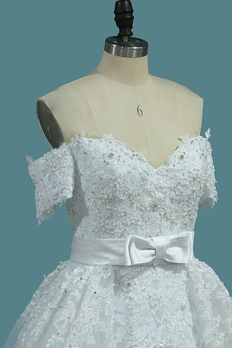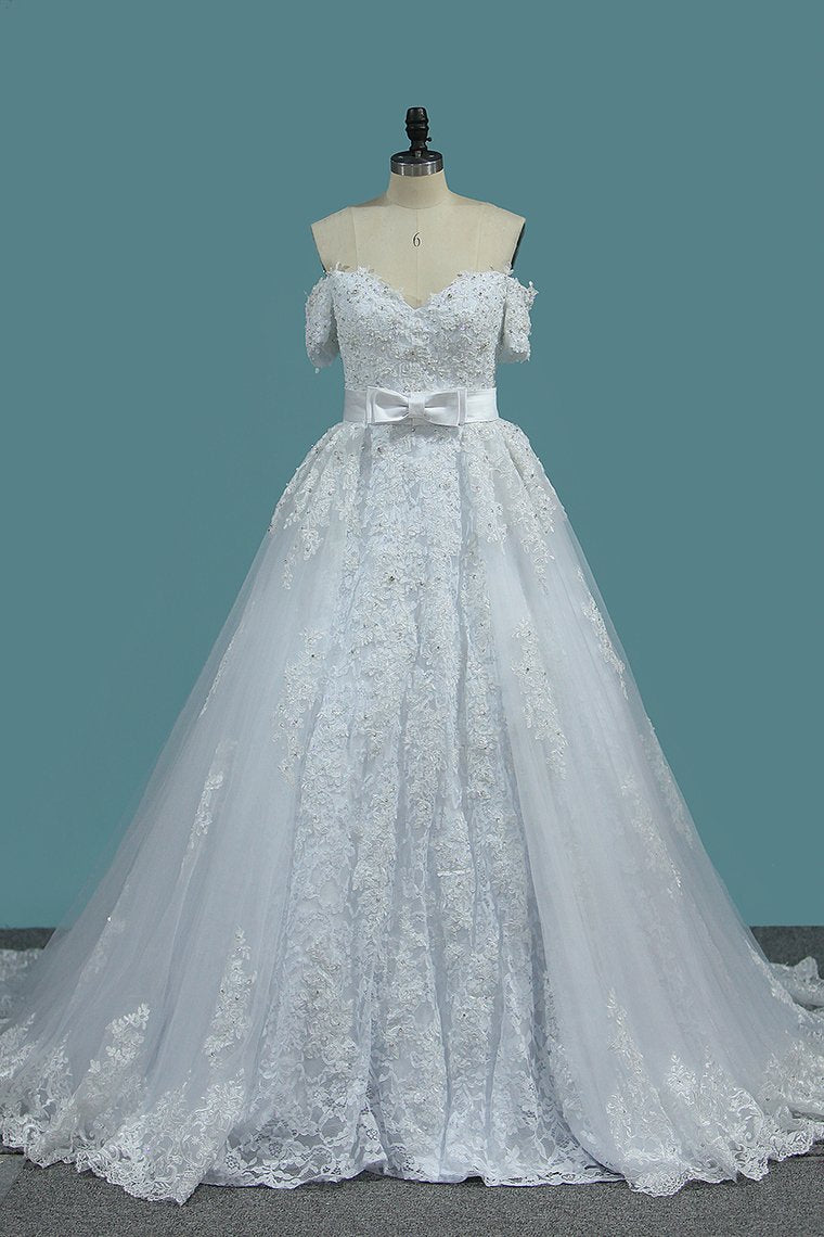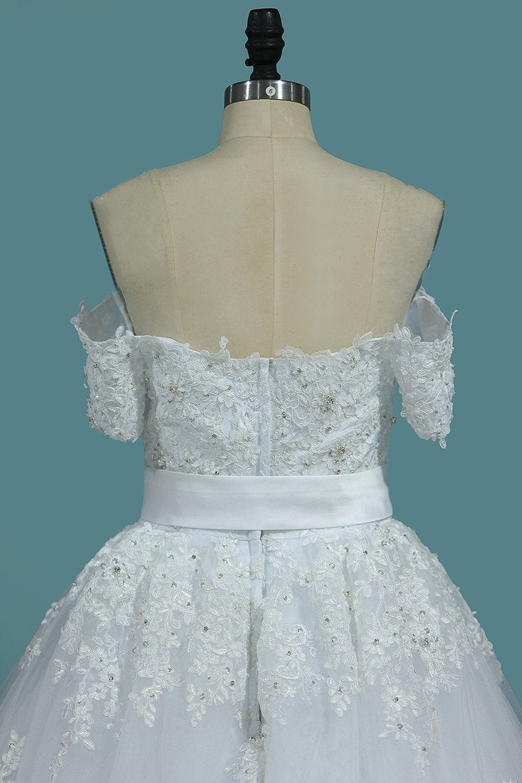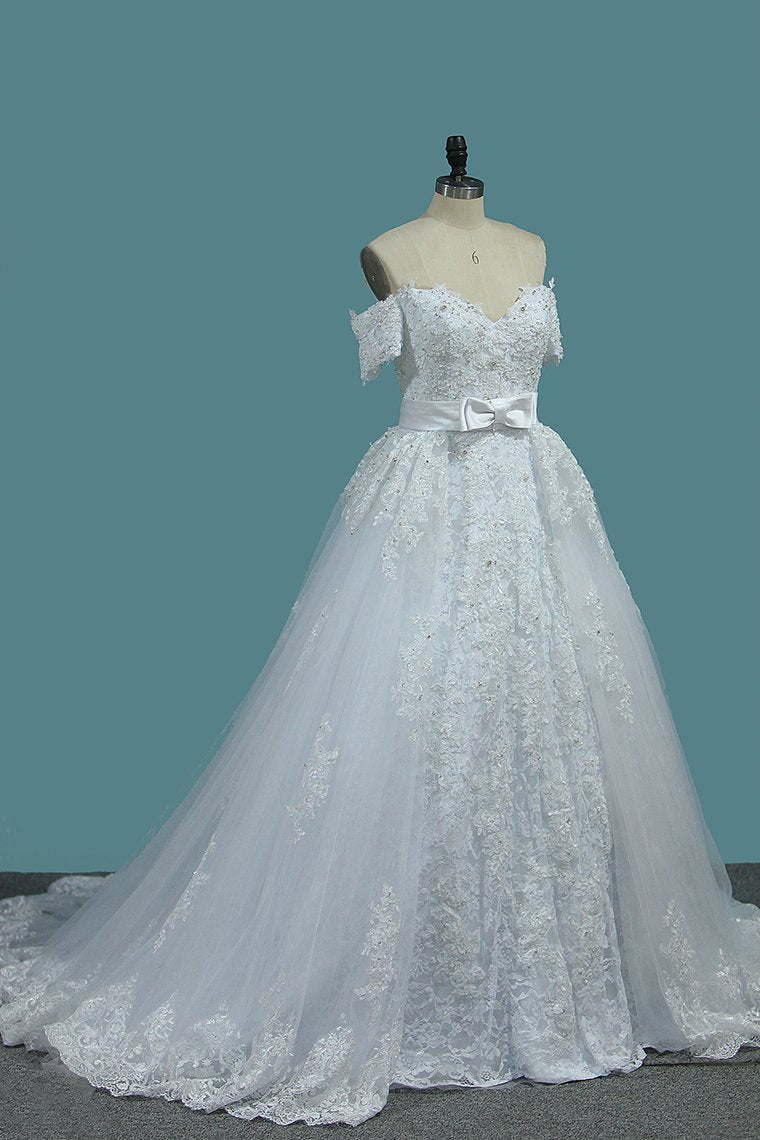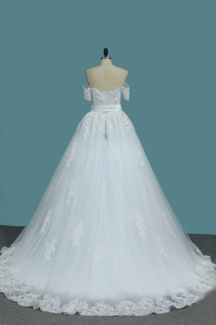 2024 Sheath Tulle Off The Shoulder Wedding Dresses With Applique And Beads