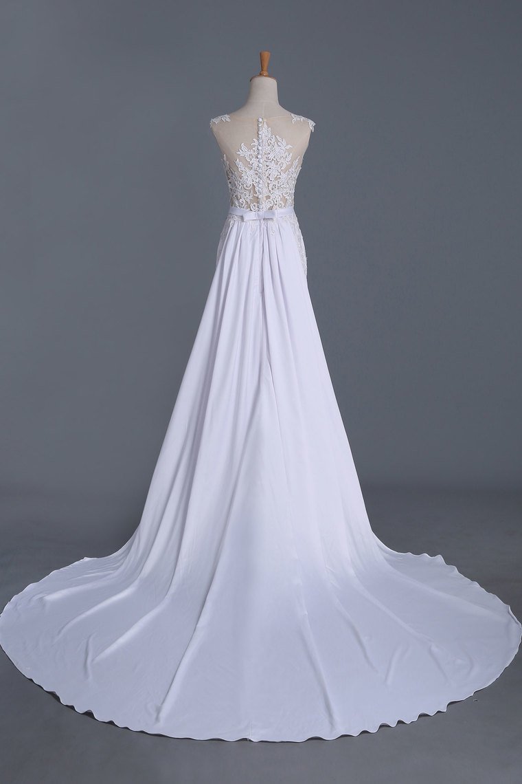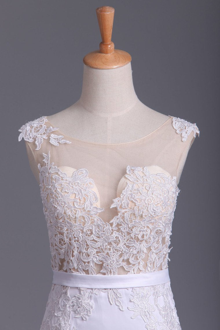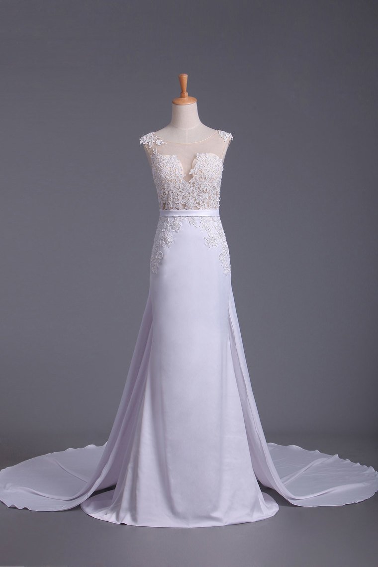2024 Sheath Wedding Dresses Scoop With Stretch Satin Skirt Detachable