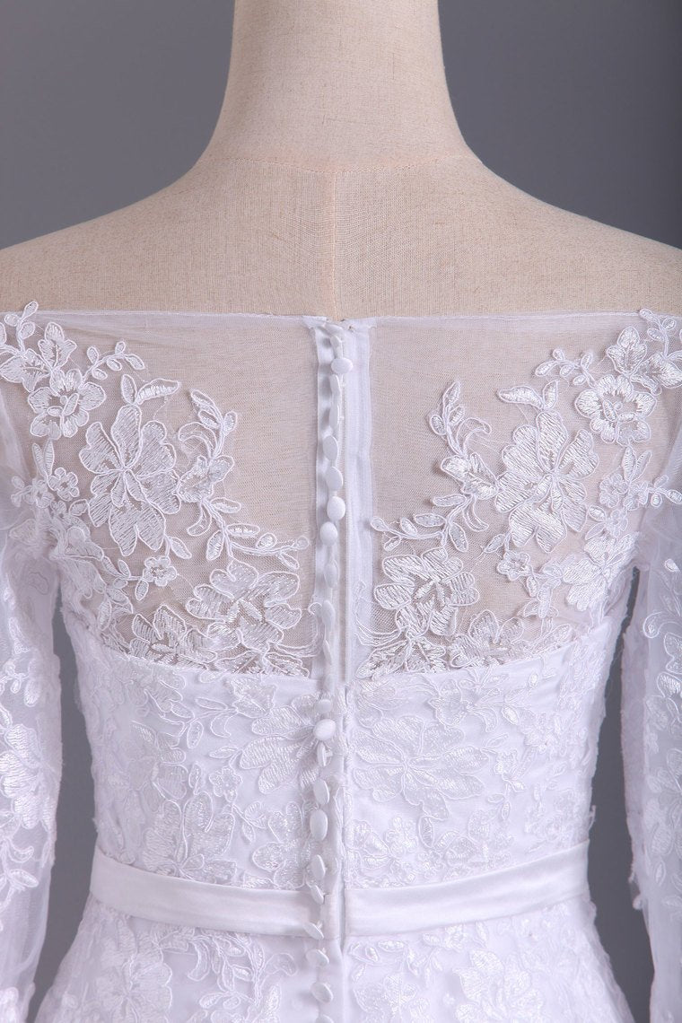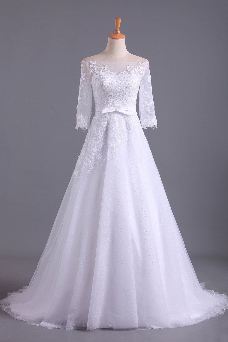 2024 Shiny Wedding Dresses Bateau Half Length Sleeve A Line With Applique