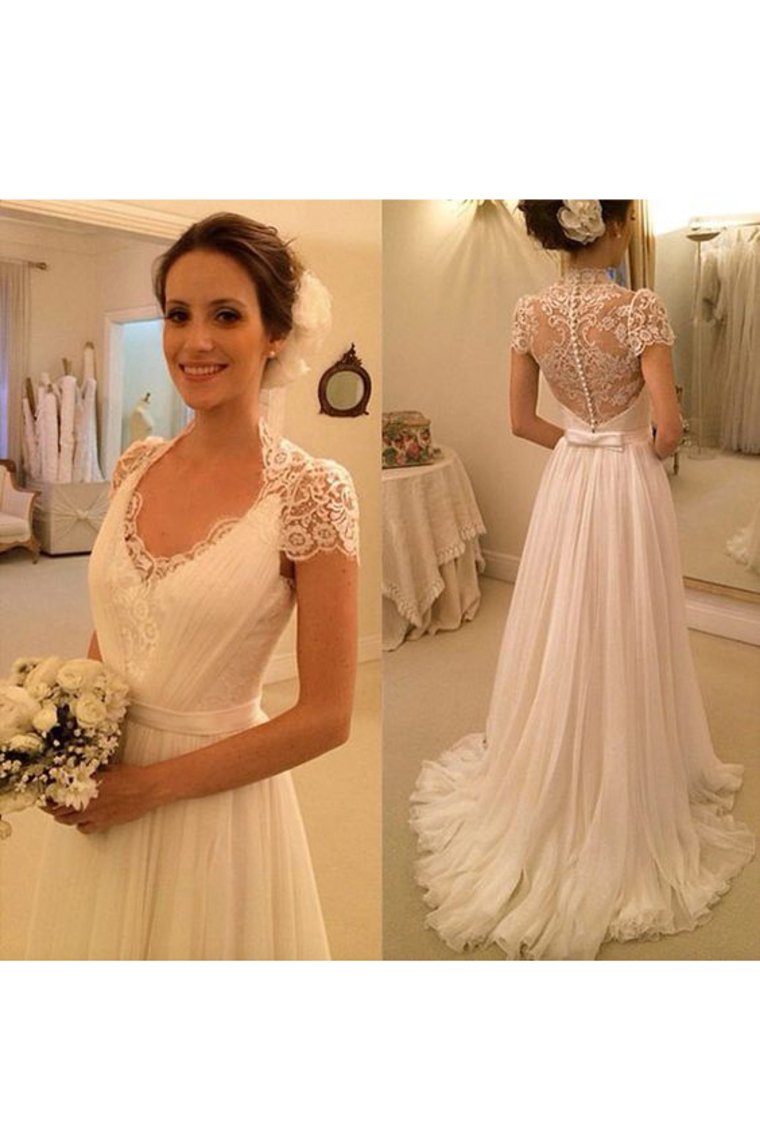 2024 Short Sleeves Wedding Dresses A Line Chiffon With Applique And Sash