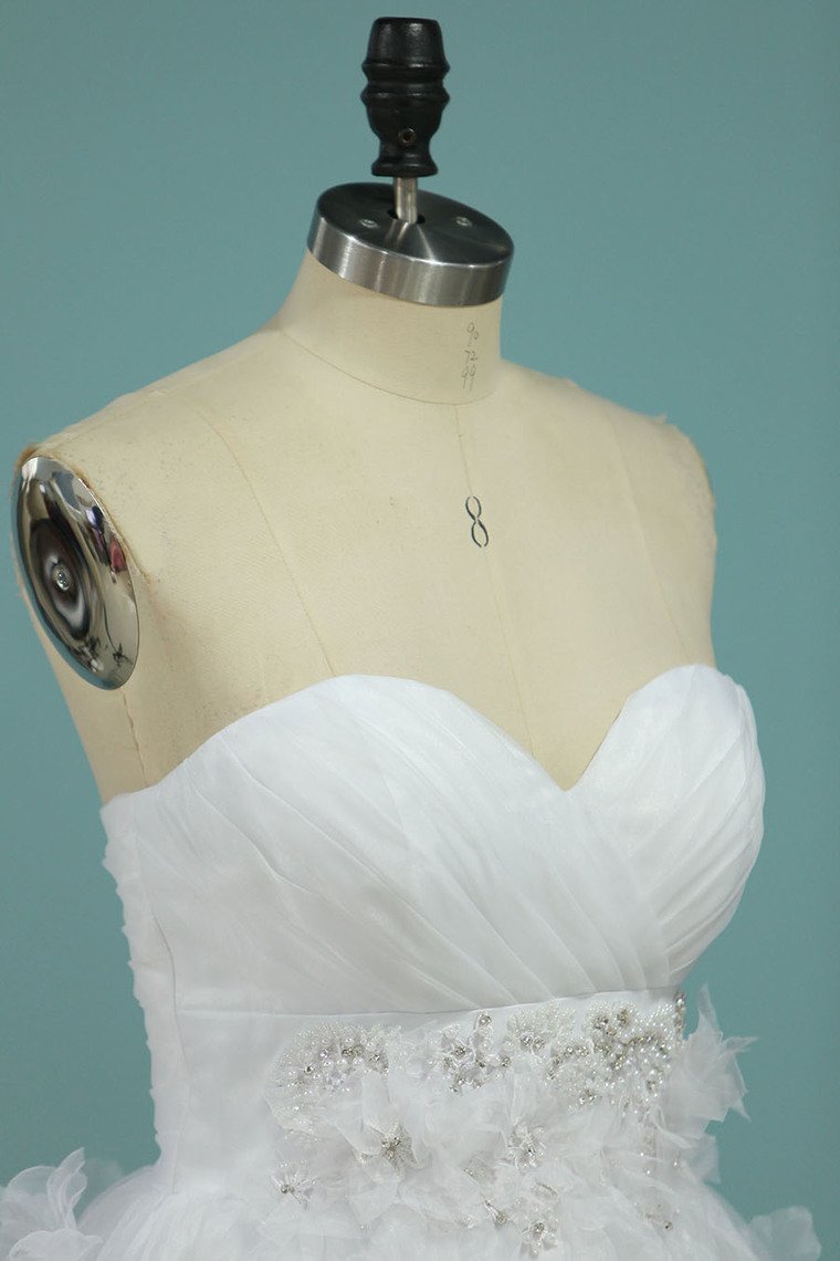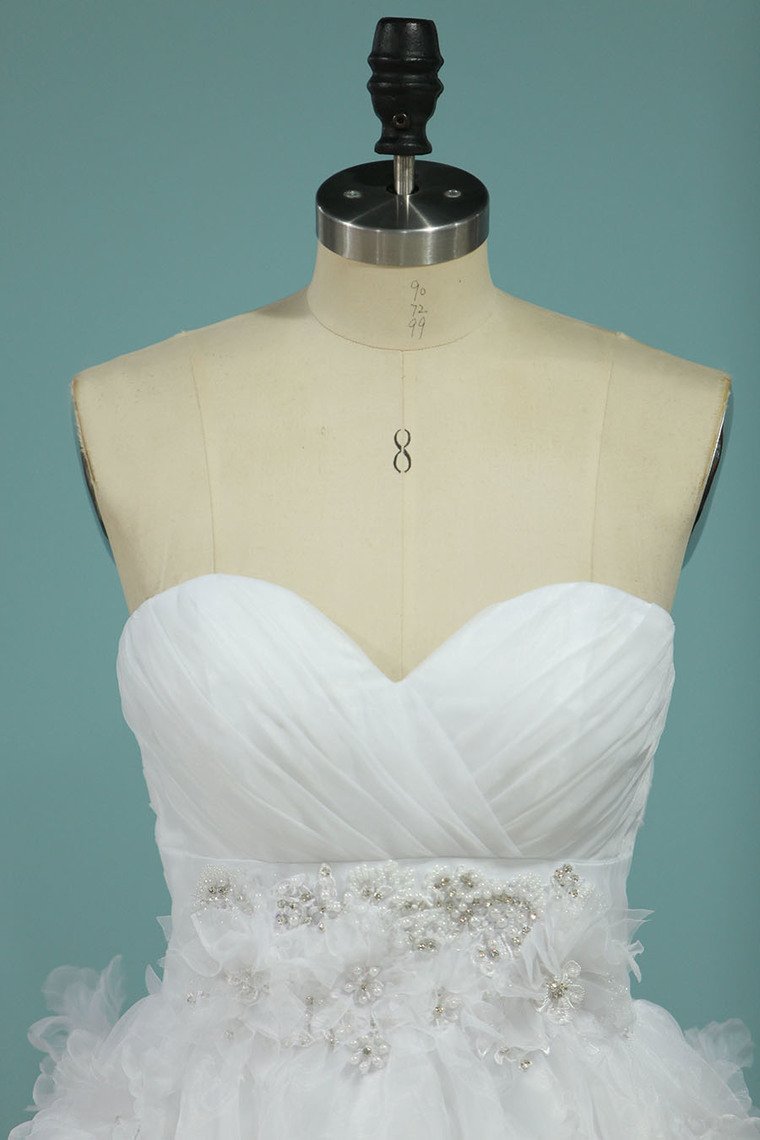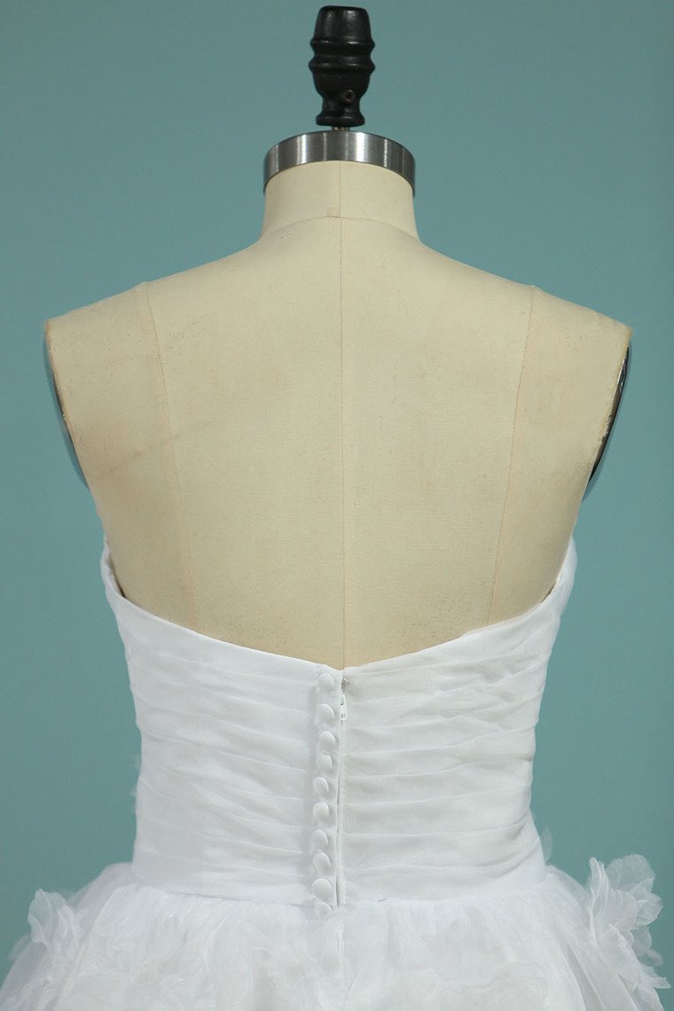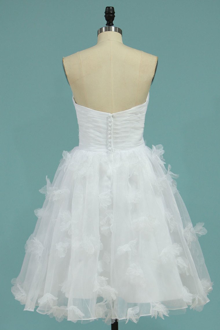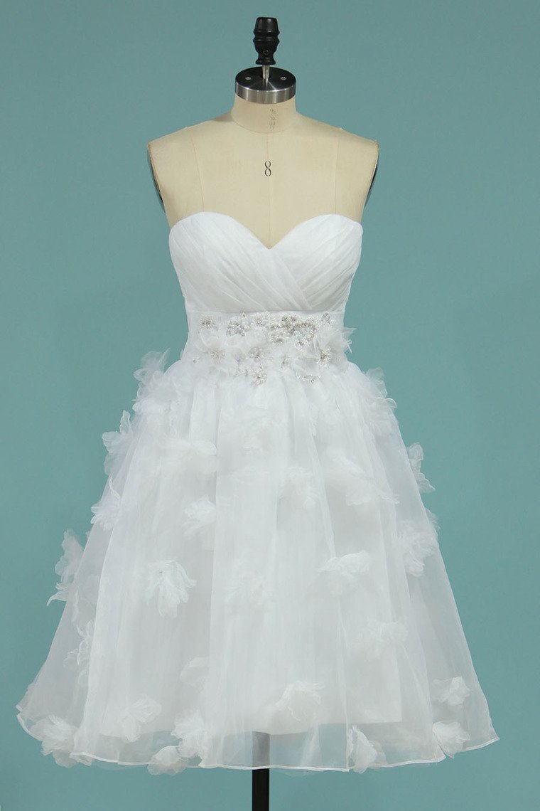 2024 Short Sweetheart With Handmade Flowers White Wedding Dress Beaded