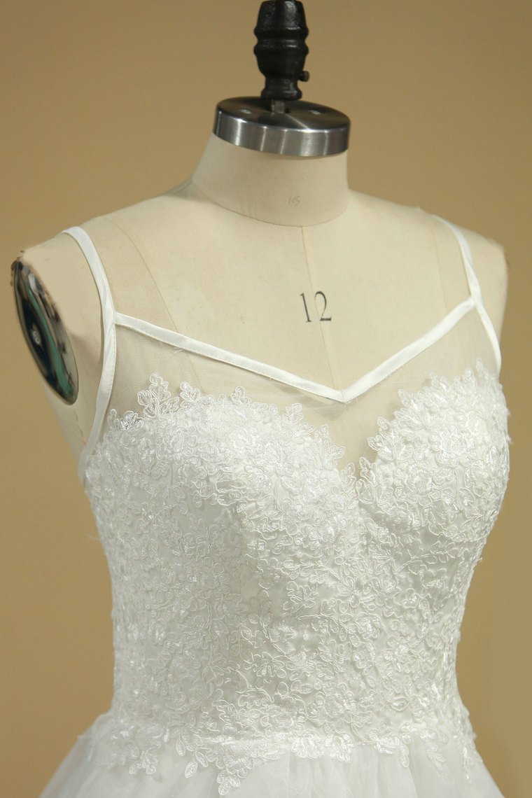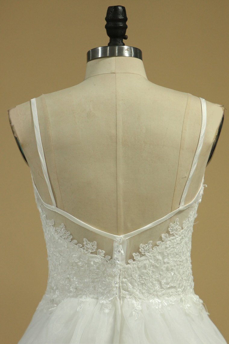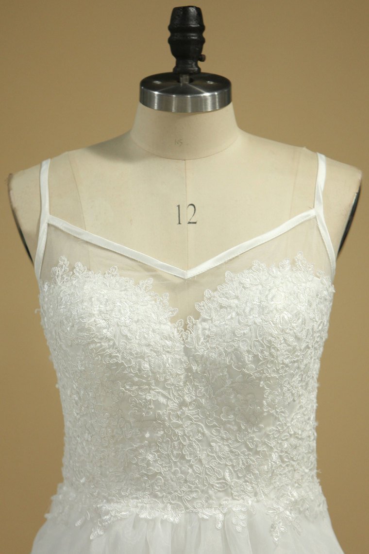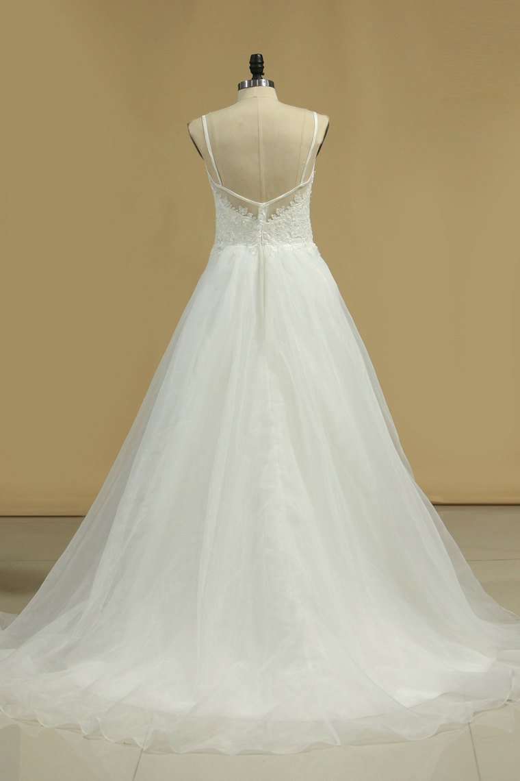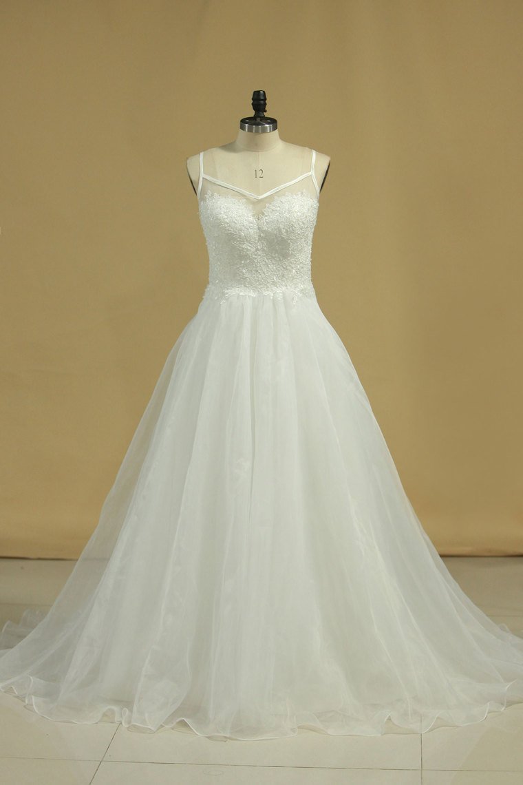 2024 Spaghetti Straps A Line Wedding Dresses Organza With Applique