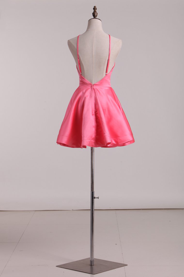 2024 Spaghetti Straps Open Back Satin Short/Mini Cocktail Dresses
