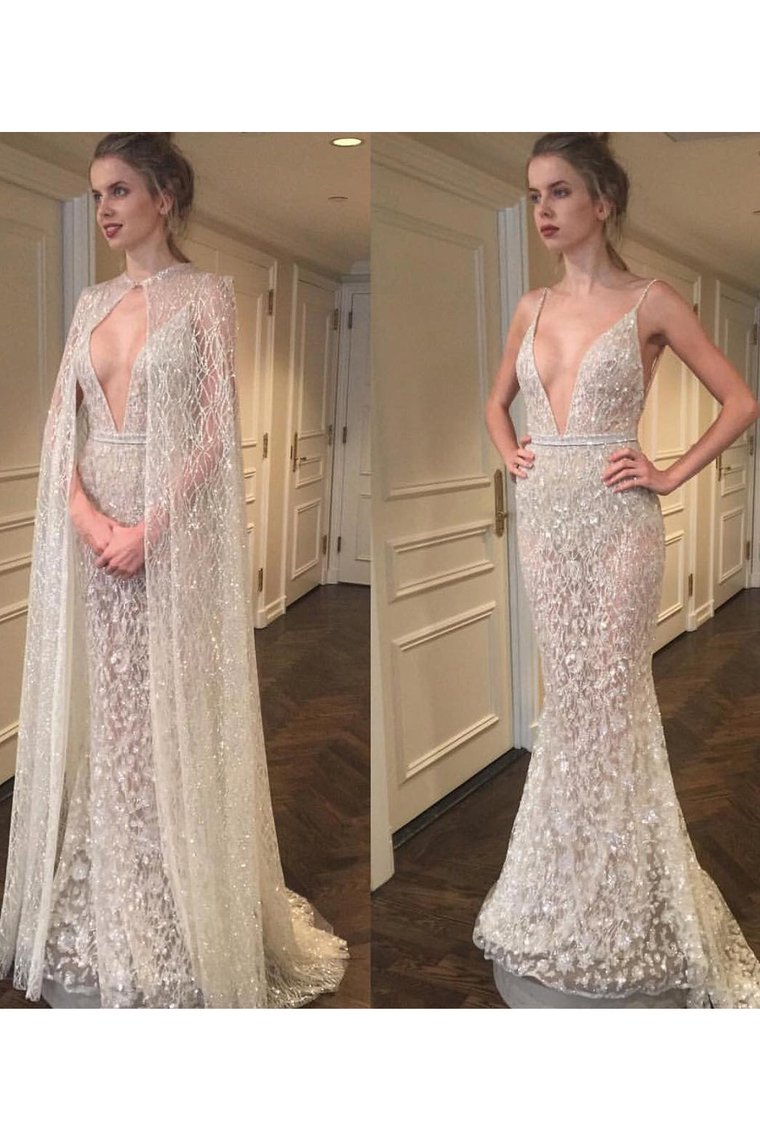 2024 Spaghetti Straps Wedding Dresses Mermaid Lace With Sash And Cape