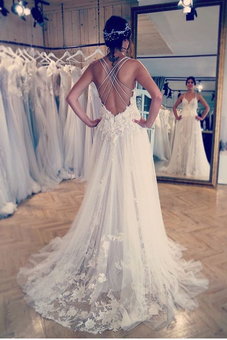2024 Spaghetti Straps Wedding Dresses Tulle A Line With Applique