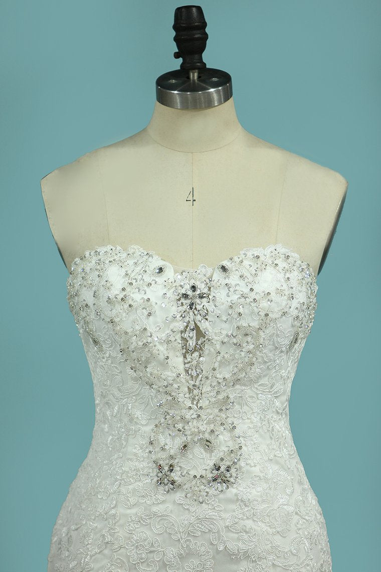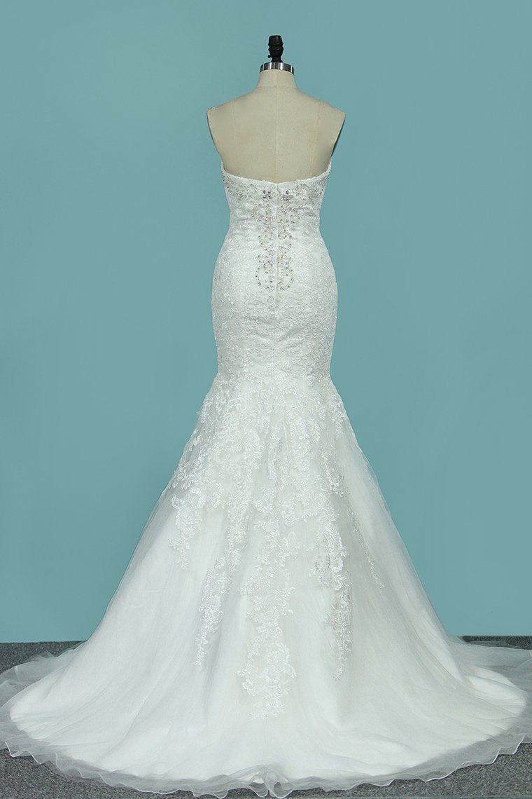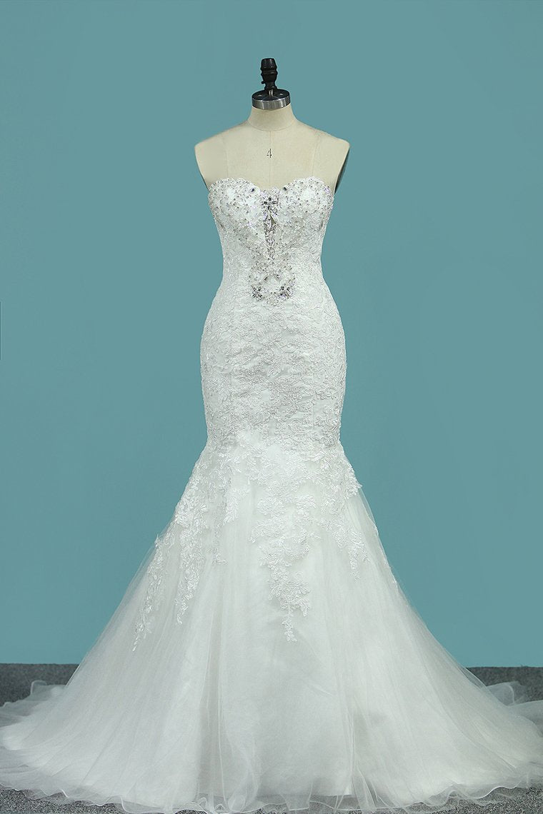 2024 Strapless Mermaid/Trumpet Wedding Dresses Court Train With Beads And Applique