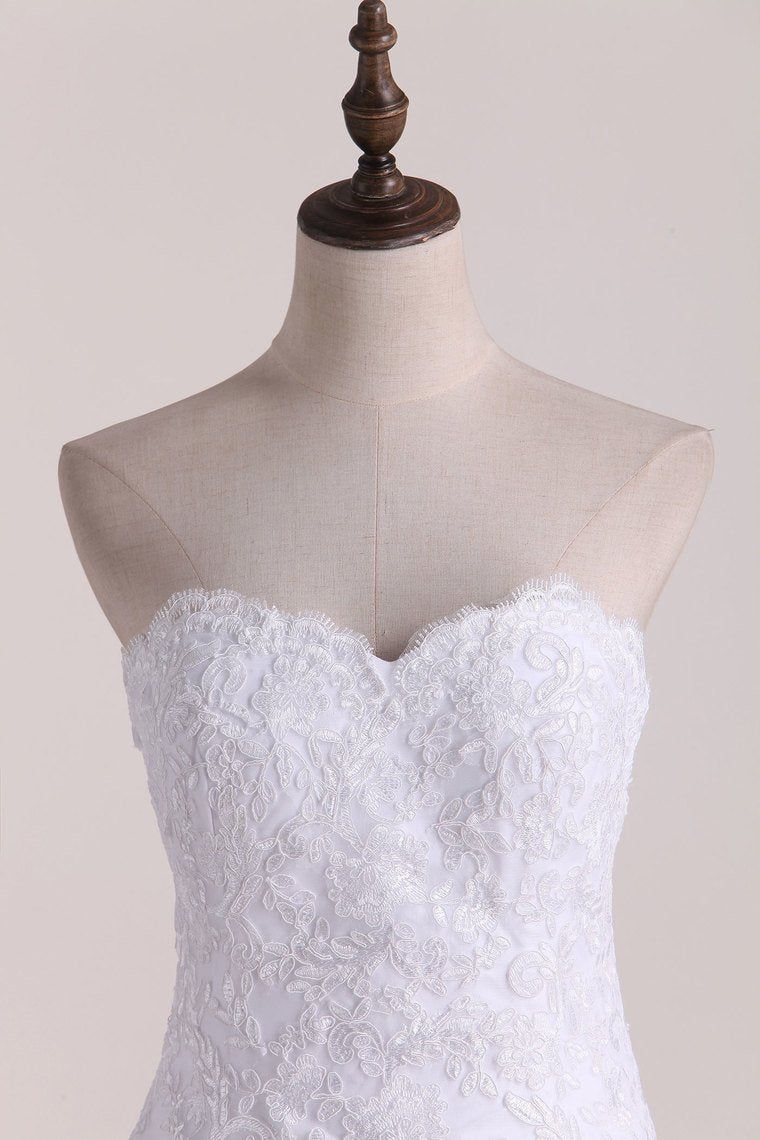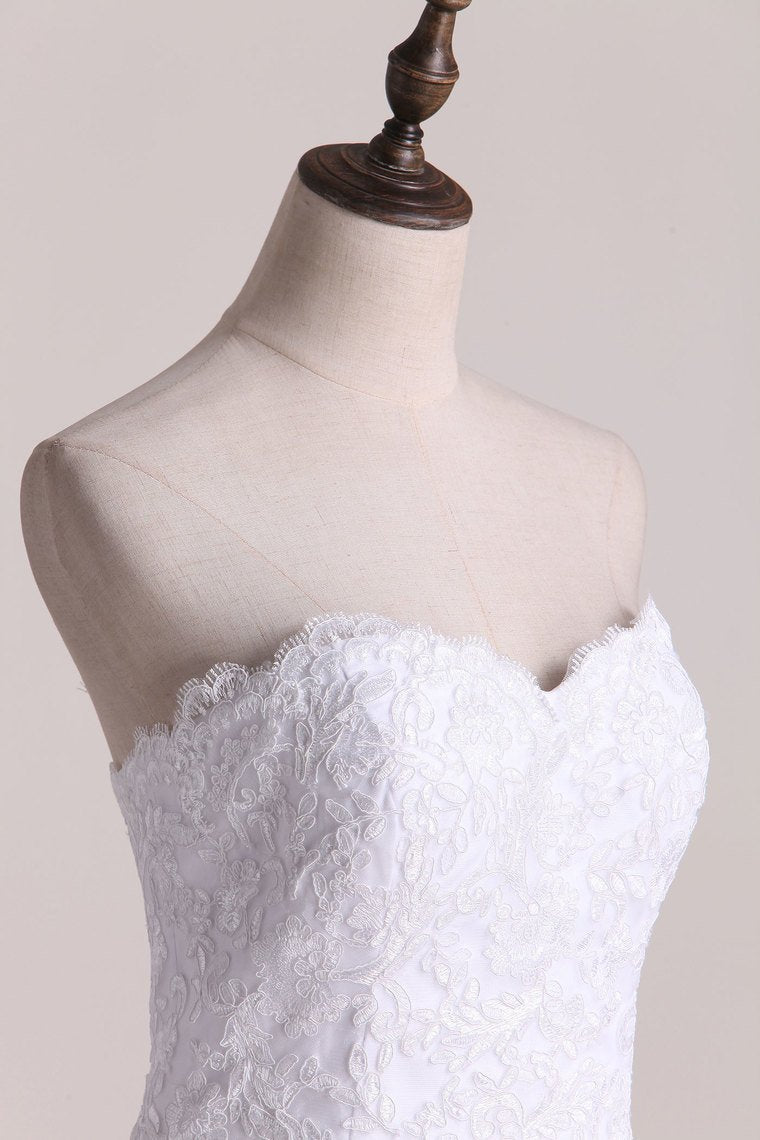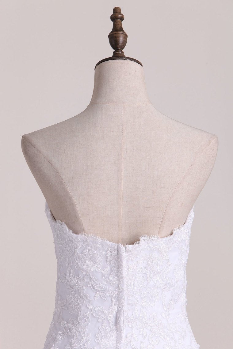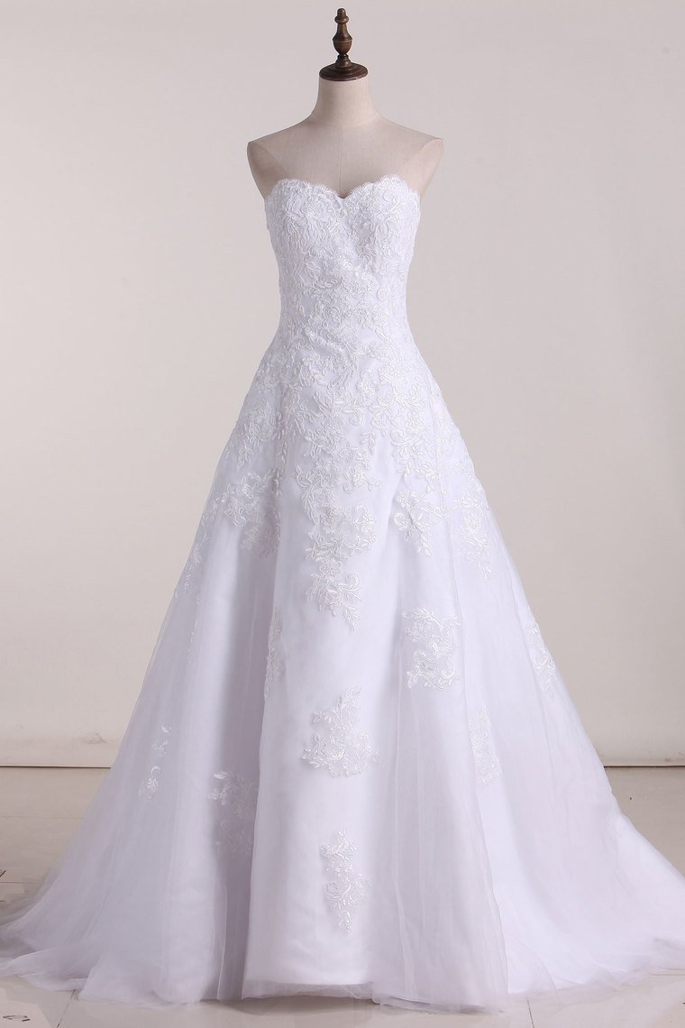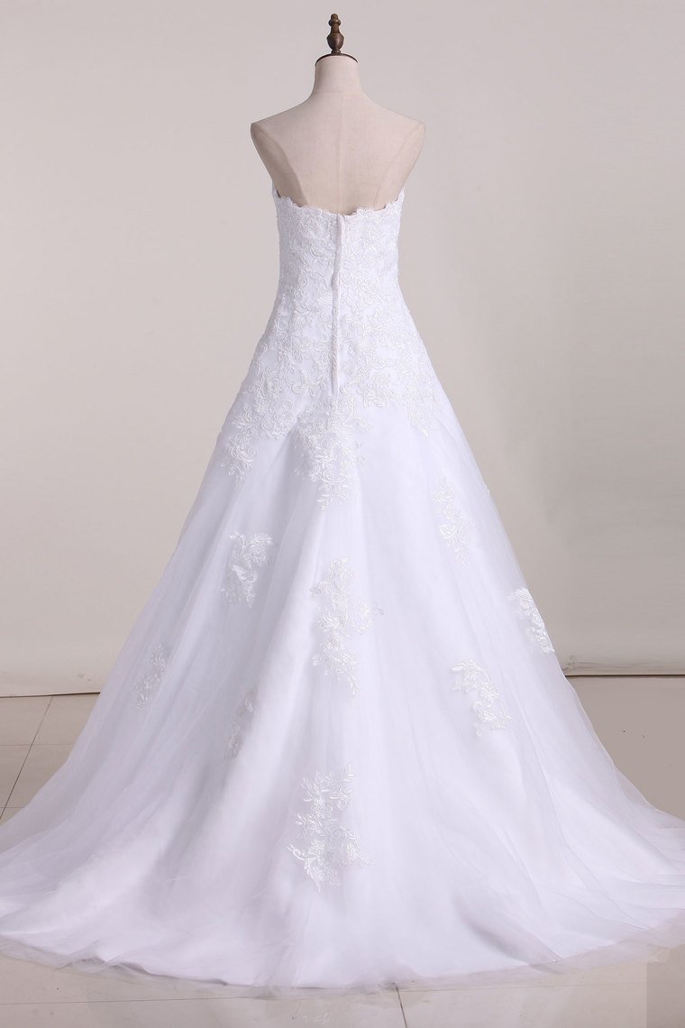 2024 Strapless Wedding Dresses A Line Tulle With Applique Court Train