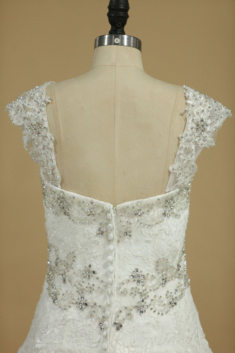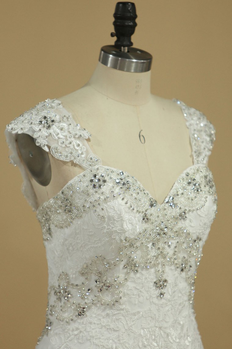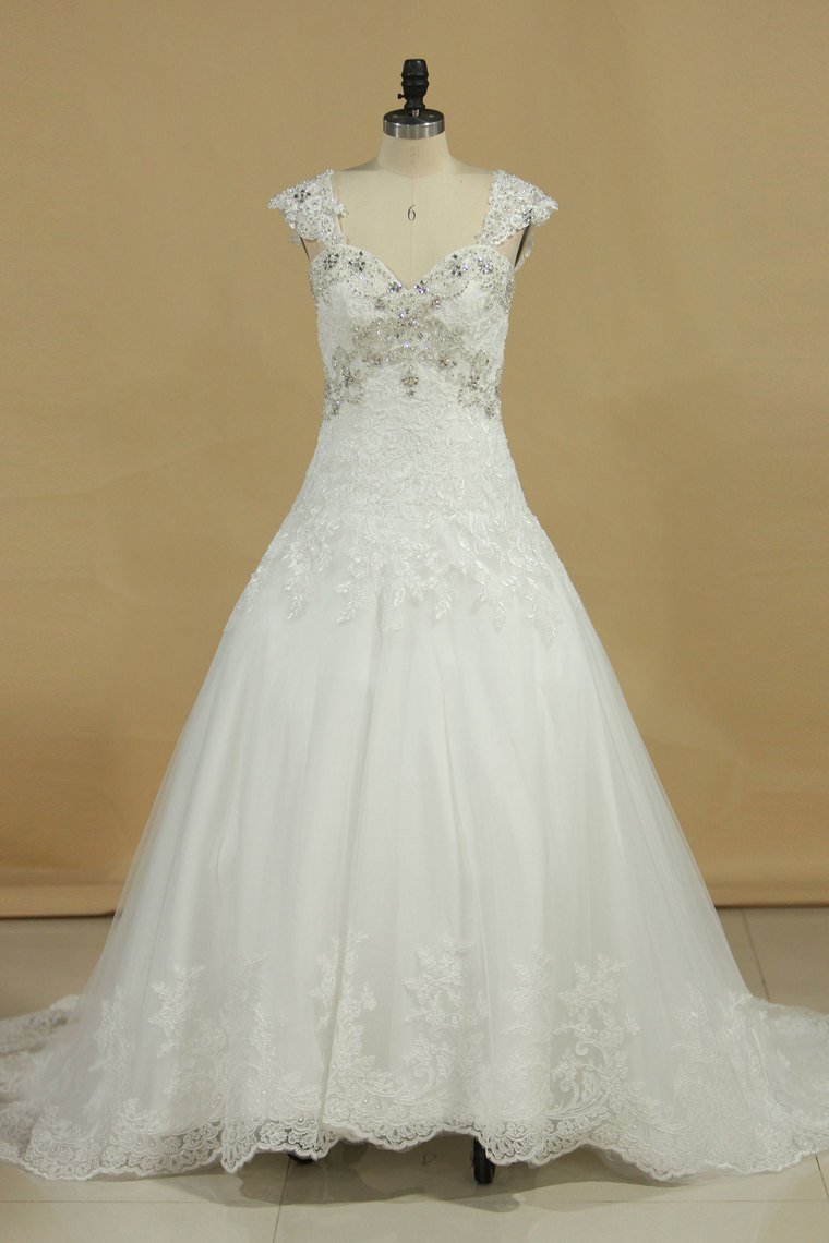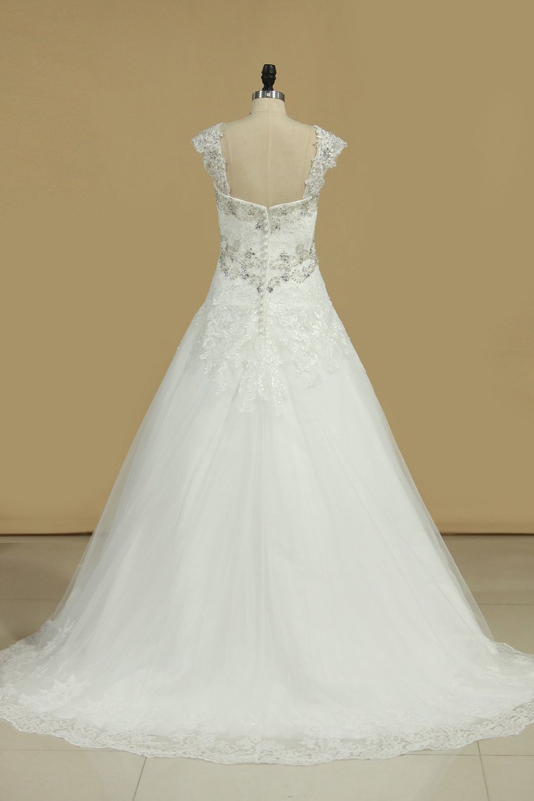 2024 Straps A Line Wedding Dresses With Applique And Beads Tulle