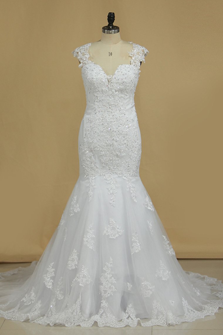 2024 Straps Mermaid Wedding Dresses Tulle With Applique And Beads