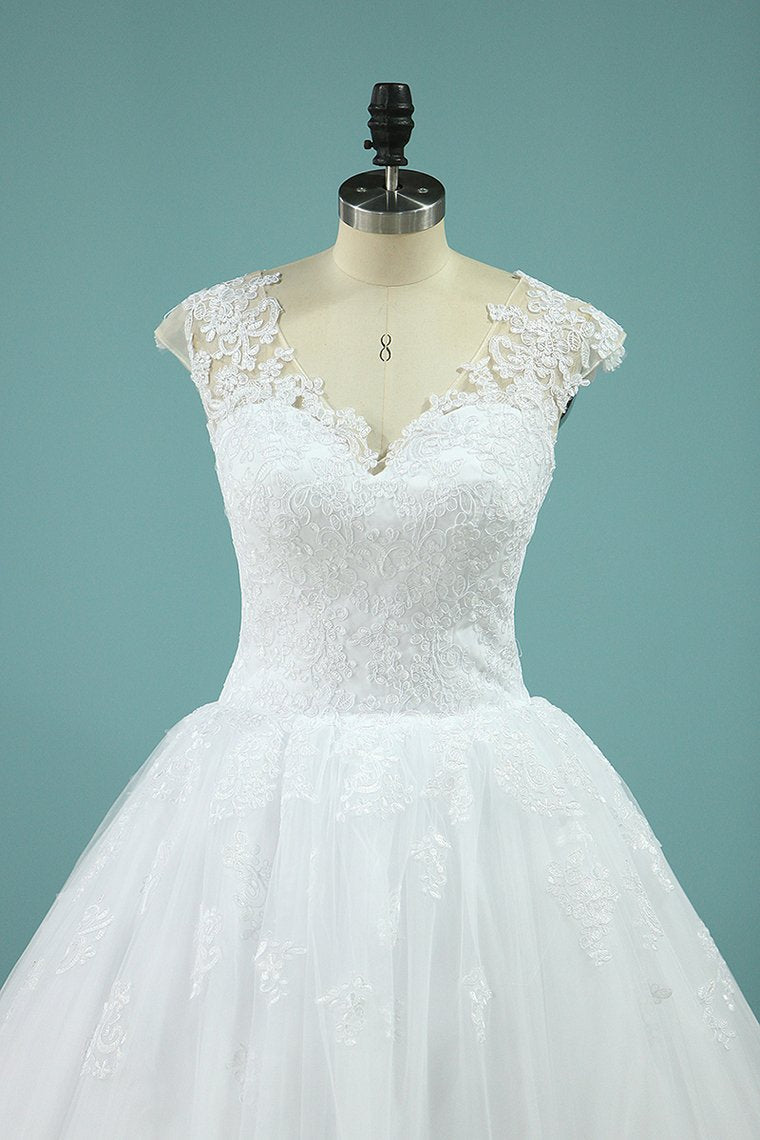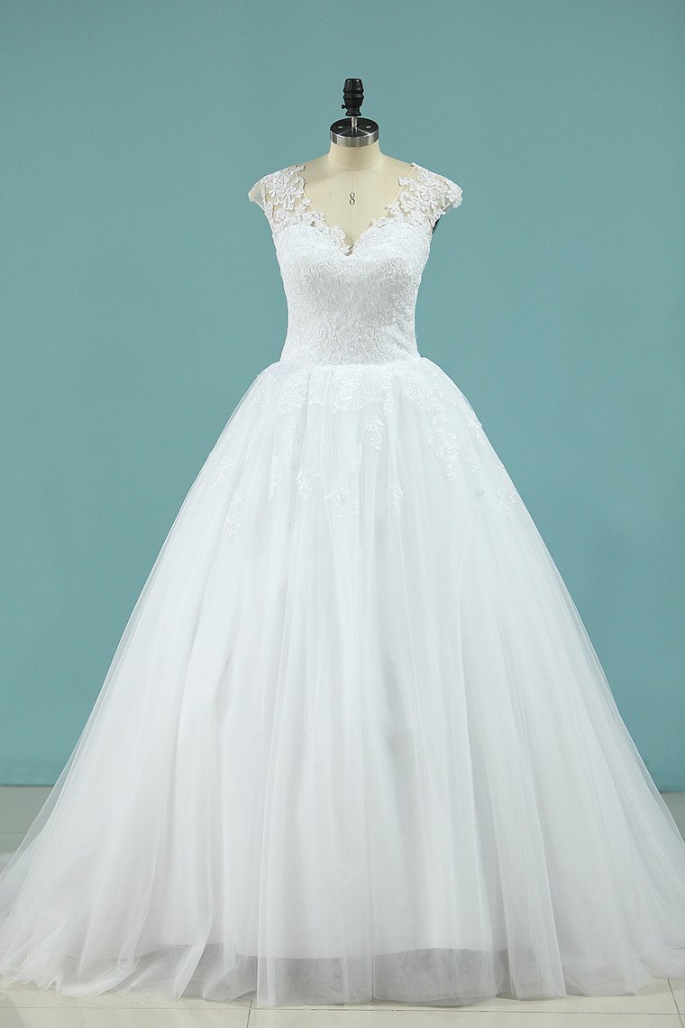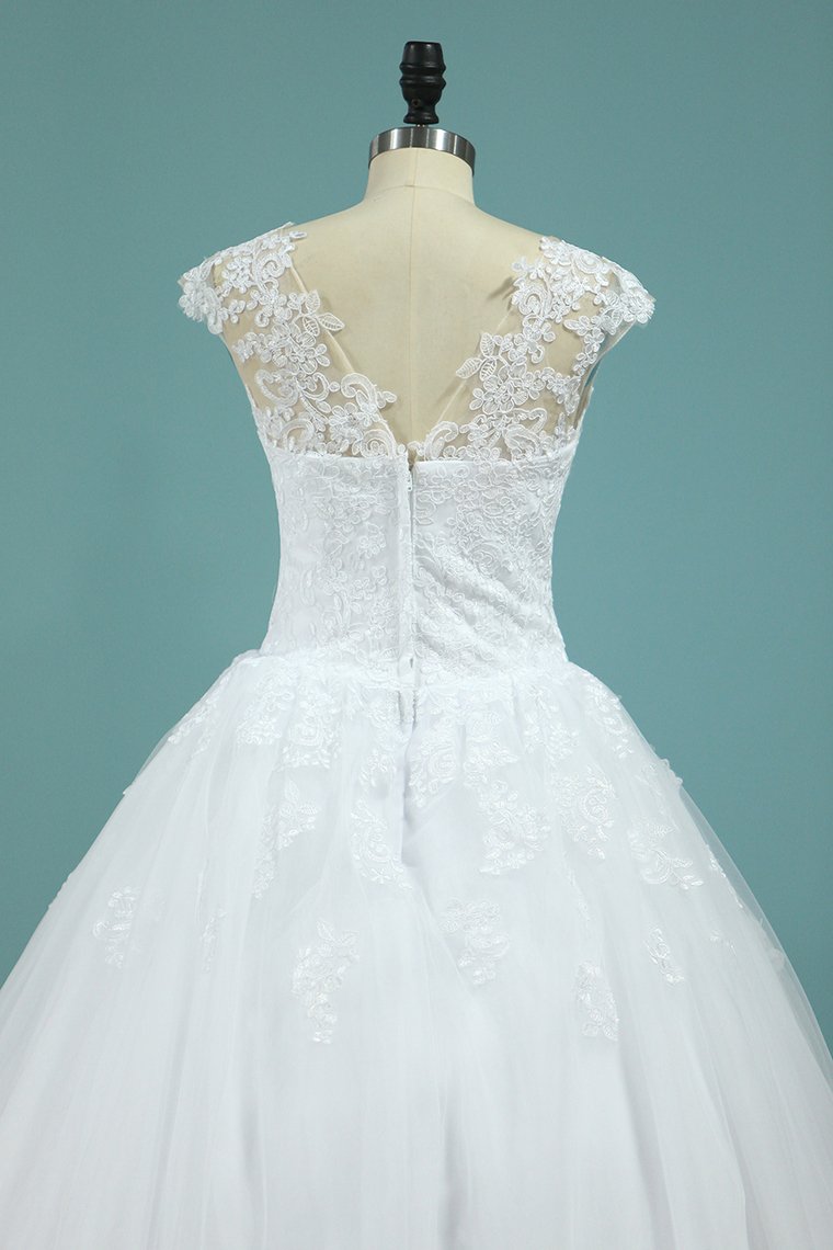 2024 Straps Wedding Dresses Ball Gown Tulle With Applique Chapel Train