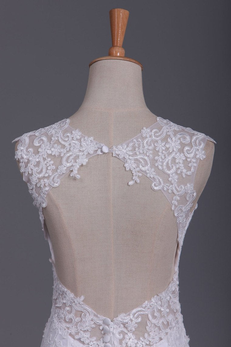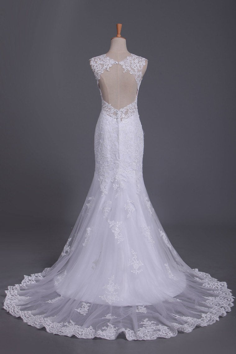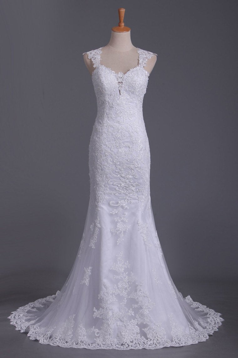 2024 Straps Wedding Dresses Mermaid/Trumpet With Applique Tulle Court Train Open Back