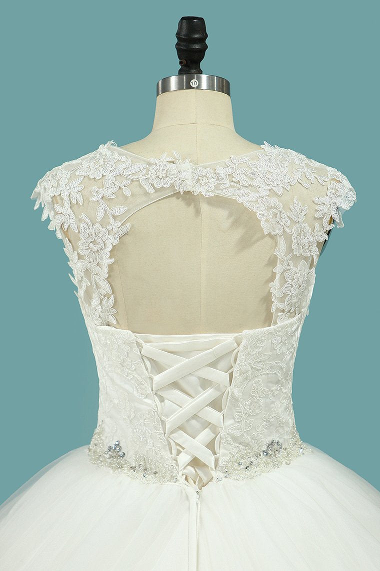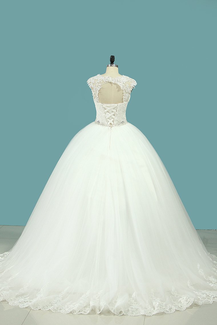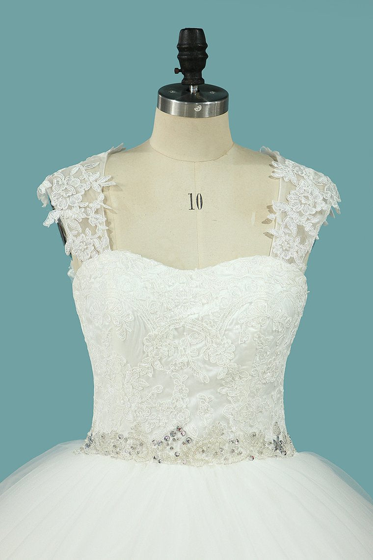 2024 Straps Wedding Dresses Tulle With Applique And Beaded Waistline Open Back