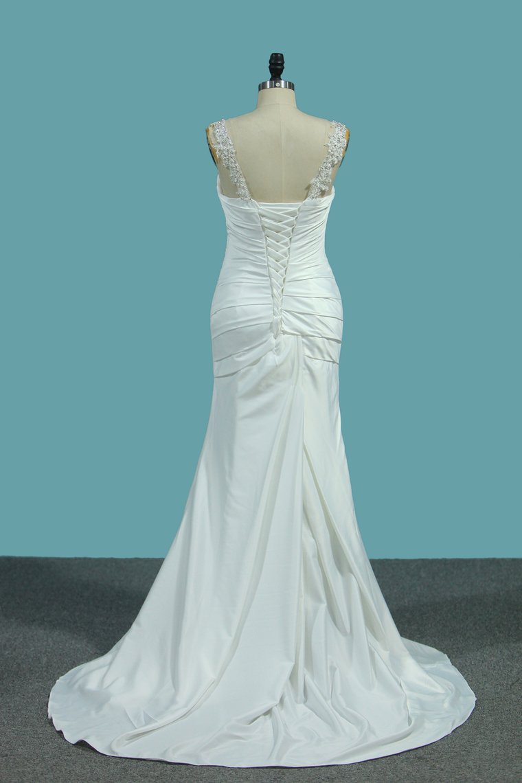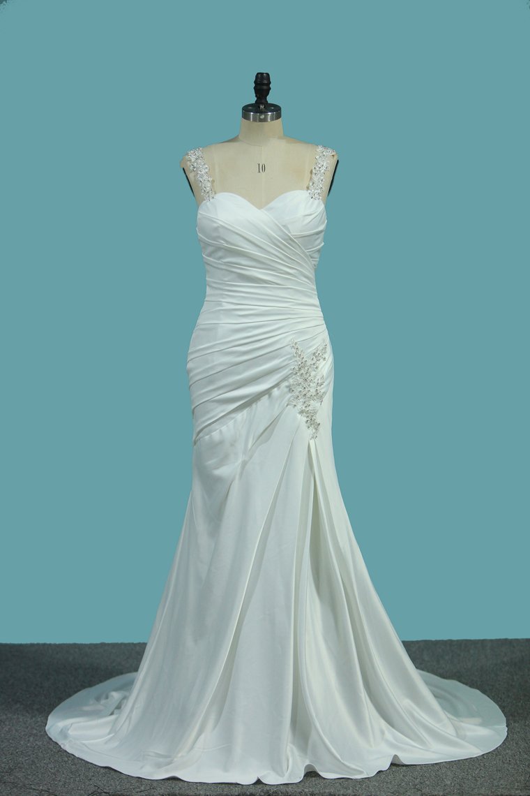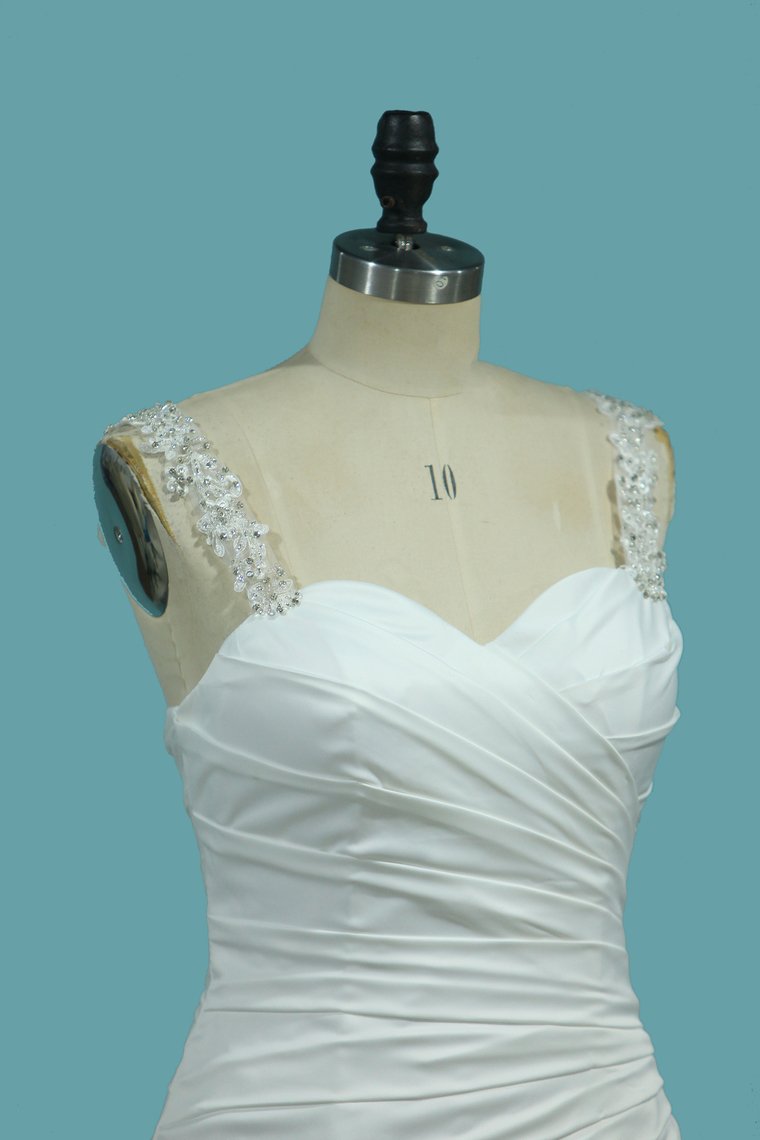 2024 Stretch Satin Wedding Dresses Mermaid With Beads And Ruffles New Arrival