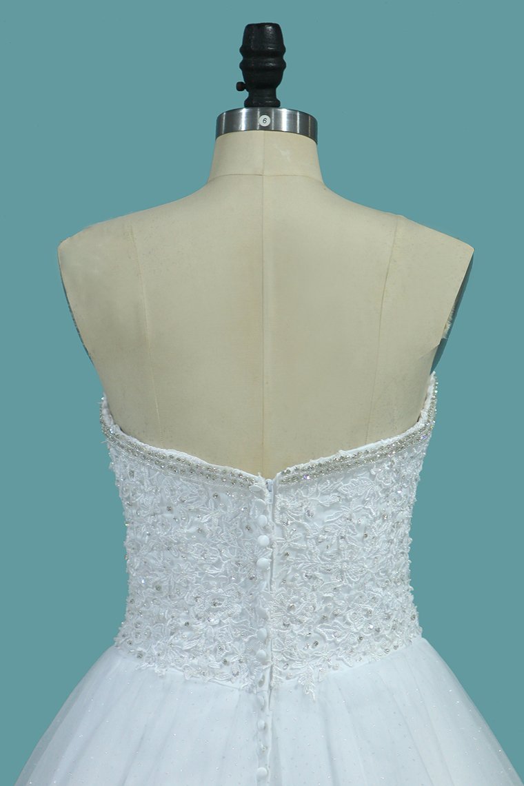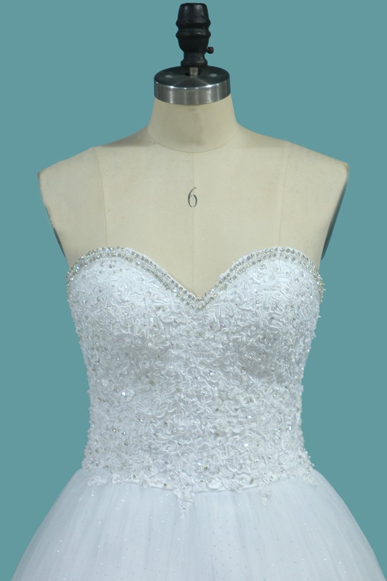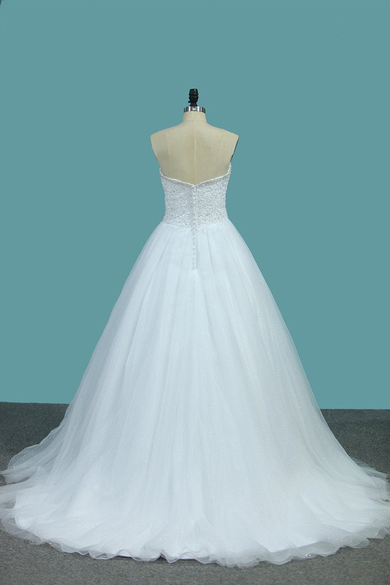 2024 Sweetheart A Line Tulle Wedding Dresses Beaded Bodice Court Train