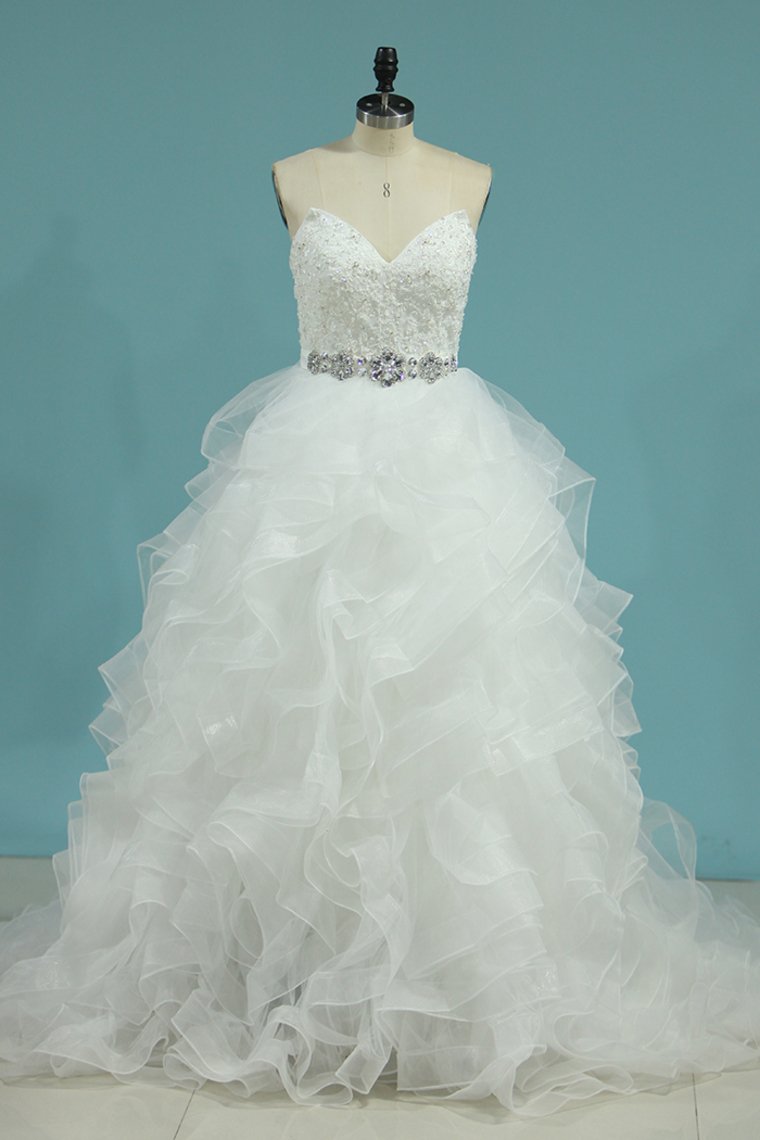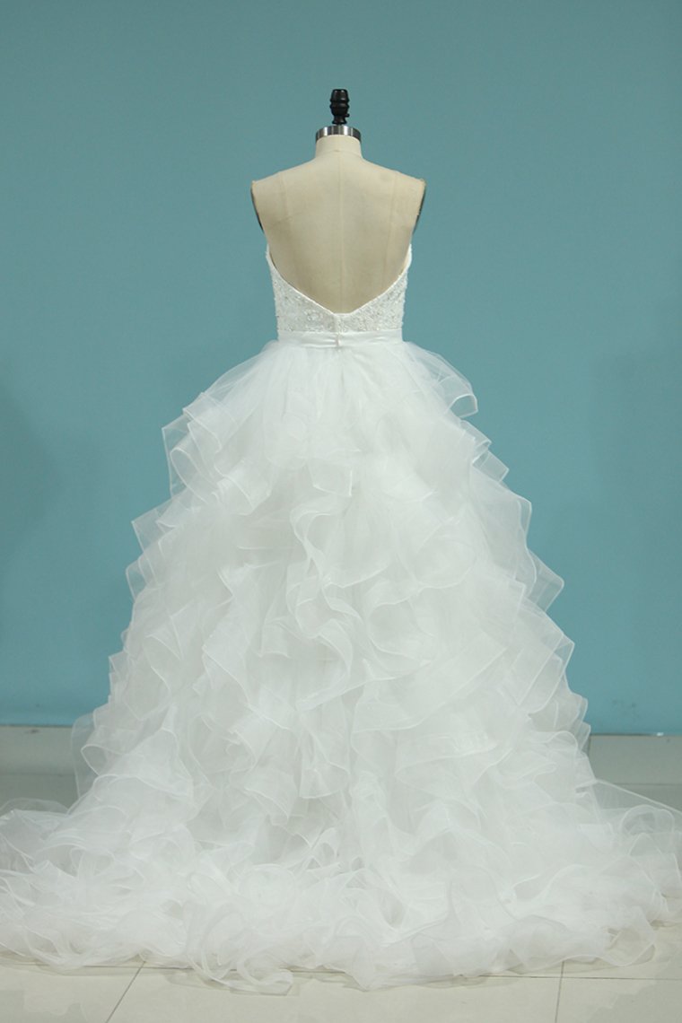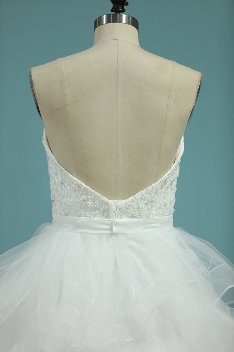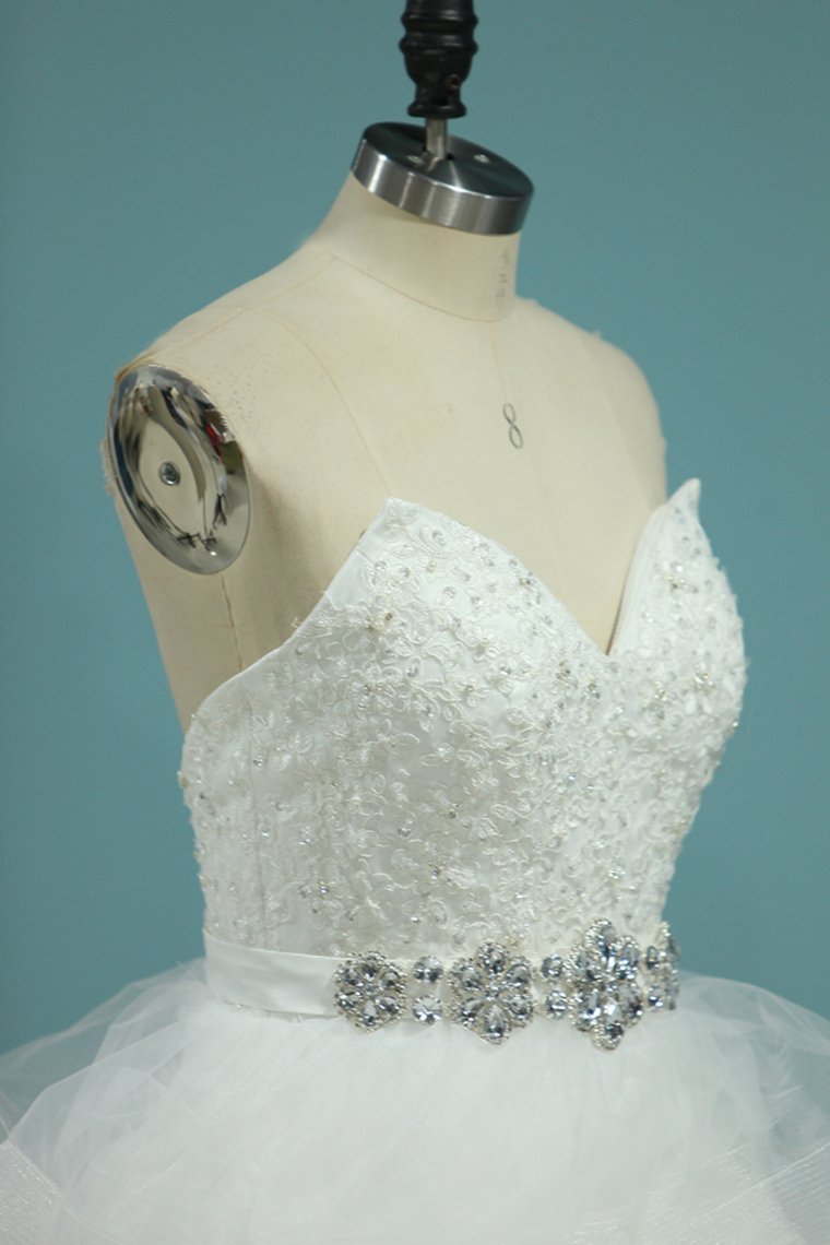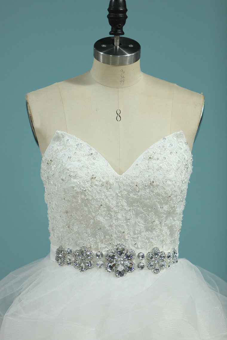 2024 Sweetheart A Line Tulle Wedding Dresses With Applique And Sash
