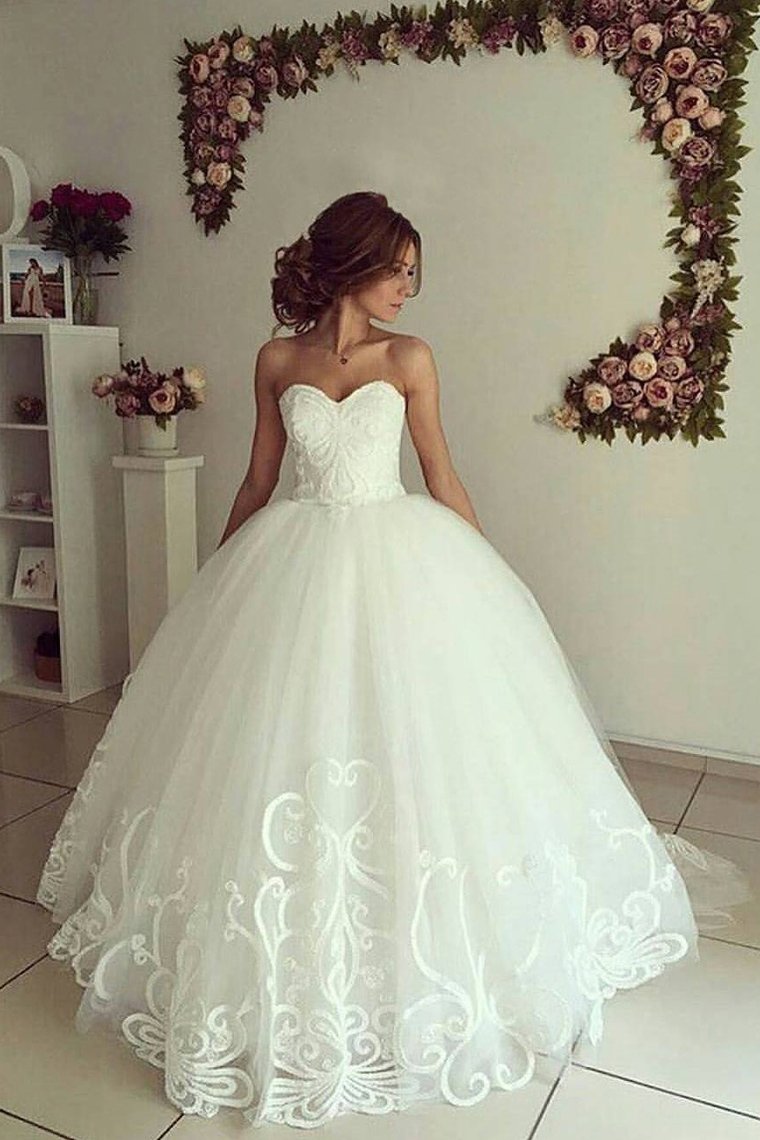 2024 Sweetheart A Line Tulle Wedding Dresses With Applique Sweep Train