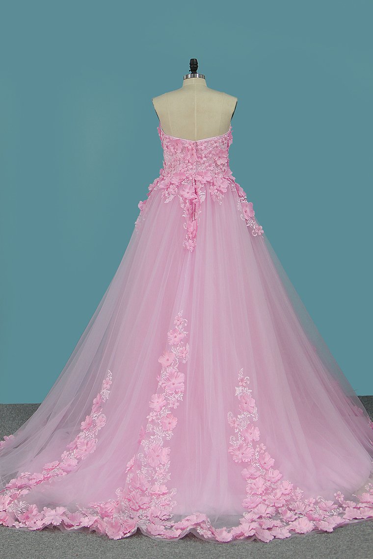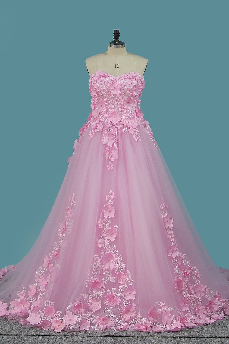 2024 Sweetheart A Line Tulle Wedding Dresses With Sash And Handmade Flower