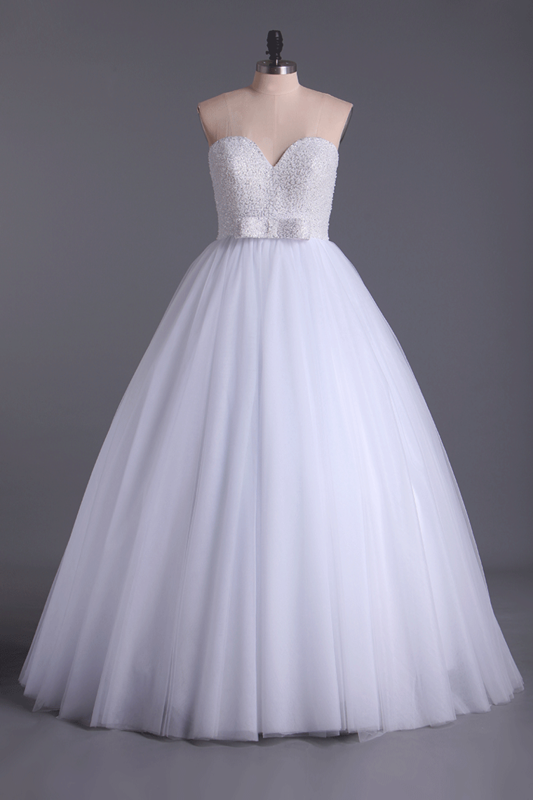 2024 Sweetheart Ball Gown Wedding Dresses Tulle Floor Length With Beading