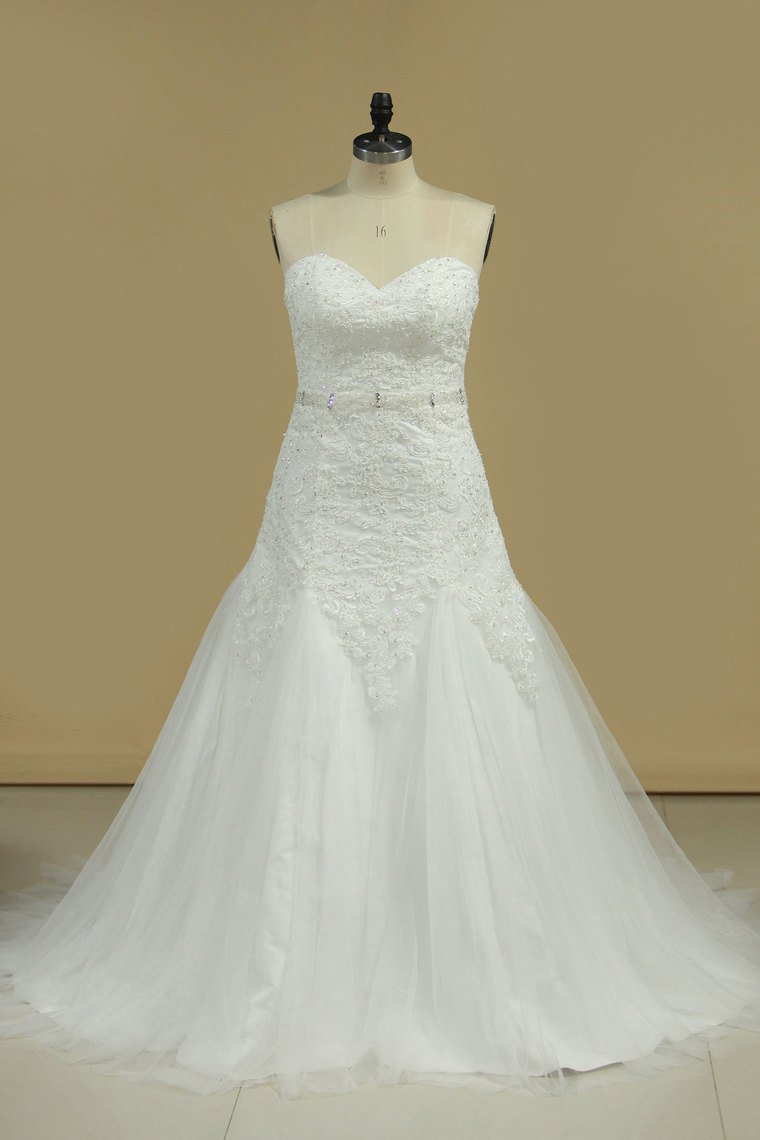2024 Sweetheart Beaded Waistline With Applique Mermaid Wedding Dresses