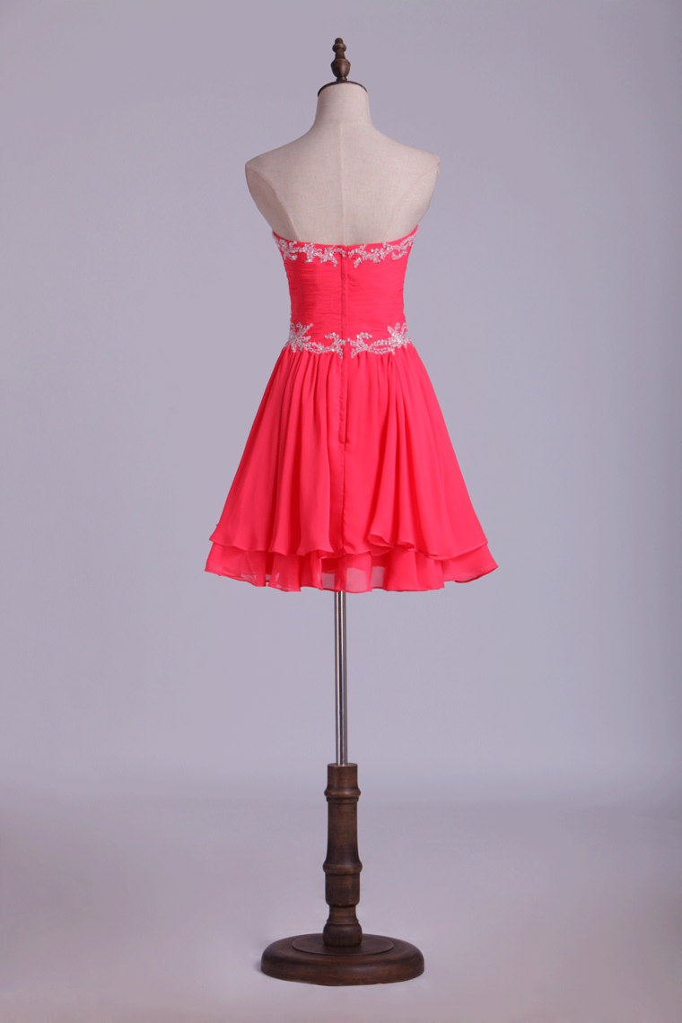 2024 Sweetheart Cocktail Dresses Ruched Bodice A-Line Chiffon With Ivory Applique